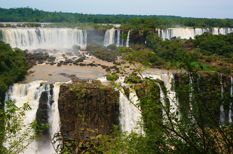 Le clou du spectacle se situe en fin de parcours à la Garganta do Diablo (la gorge du diable en français) où nous pouvons admirer depuis diverses passerelles cet ensemble de chutes d’eau pouvant atteindre 80 mètres de hauteur! Le débit est très fort et nous nous faisons bien rincer! Mais comme le climat est très chaud, ces embruns sont plutôt agréables et bienvenus. A noter que ce site spectaculaire fait office de point frontière entre le Brésil et Argentine.
