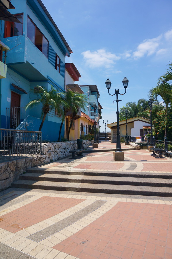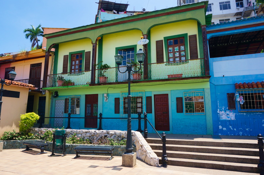 Perché sur les pentes du Cerro Santa Ana culminant à soixante mètres en dessus du Rio Guayas, ce quartier très coloré est l’endroit où les Espagnols fondèrent la ville au XVIe siècle. Mais n’y cherchez pas les fameuses petites maisons coloniales, tout à été détruit par un incendie! Au XIXe siècle, ce sont les pêcheurs et les artisans qui s’y installèrent. Dans les années 1920, le commerce du cacao connut un essor sans précédent, quelques personnes s’y enrichirent et le quartier devint beaucoup plus bourgeois. D’ailleurs, la plupart des bâtiments que nous voyons aujourd’hui sont des maisons aristocratiques qui datent de cette époque dorée. Plusieurs présidents de la république d’Equateur, quelques artistes illustres comme Ernest Hemingway ou Pablo Neruda et même le Che Guevara ont eu habité dans ce quartier à un moment de leur vie.