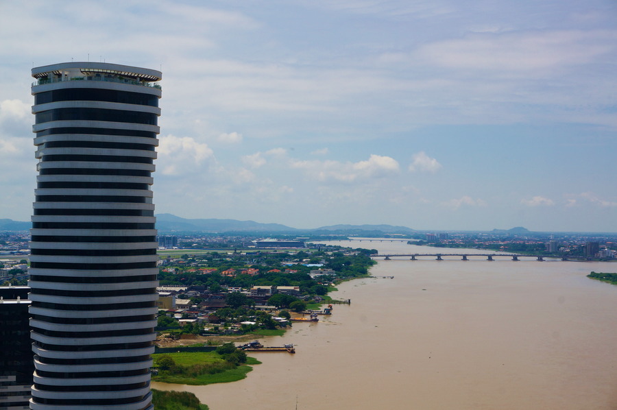 Malgré son côté grande ville et son climat chaud, nous avons trouvé Guayaquil moins étouffante que Quito. C’est notamment grâce au Rio Guayas, déjà très large à cet endroit, proche de son delta, qui amène un peu d’ouverture et un petit courant qui sont plus que bienvenus.