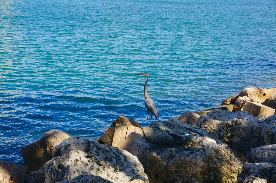 Au bord de la Miami River, la rivière qui donna son nom à la ville, se trouve un quartier flambant neuf ainsi qu’une promenade qui longe la rive nord de la rivière sur quelques kilomètres jusqu’à Bayfront, son embouchure. Des arbres y ont été planté et l’ombre fournie est indispensable dans cette fournaise de début d’été. Si tout est bien riche et bien propret, ce n’est pas assez « hype » pour la jeunesse dorée de Floride du Sud (contrairement à Miami Beach), donc nous avons eu le coin rien qu’à nous pour flâner tranquillement. Heureusement que quelques hérons sont venus nous tenir compagnie du côté de la baie!