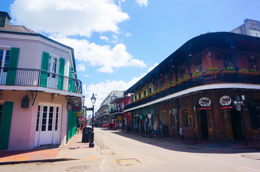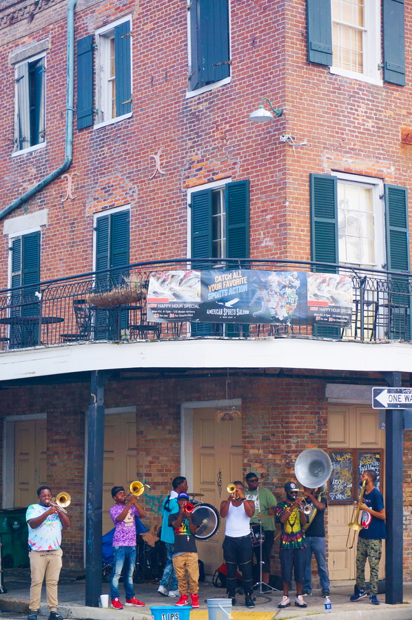 Le quartier, bien que très touristique, est vraiment sympa avec ses concerts de jazz à chaque coin de rue qui font la renommée de la ville. C’est animé et pas trop propret. Rien à voir avec la trop parfaite, proprette et un peu ennuyeuse Floride. La seule chose que nous déplorons, c’est l’absence de zone piétonne.