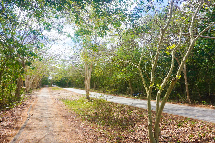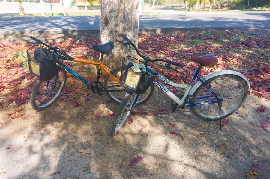 Ce ne sont pas les loueurs de vélos qui manquent à Valladolid et une location à la journée revient à une centaine de pesos (4,90€ ou 4,90 CHF) par personne. Nous avons effectué une boucle d’environ trente-six kilomètres au sud de la ville. Plusieurs cénotes bordent la route mais pour être honnêtes, c’est vraiment surfait. Nous avons vraiment de la peine avec l’aménagement à l’américaine façon parc d’attractions des sites naturels. Nous avons préféré passer notre chemin et profiter à fond de la balade sous les arbres.