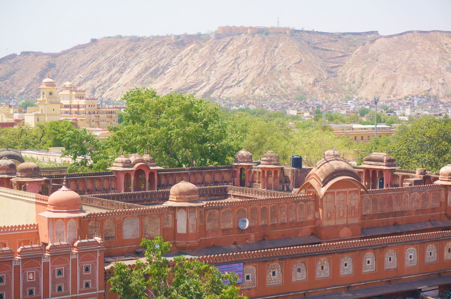 C’est sûrement l’édifice le plus connu de Jaipur, voir du Rajasthan. D’ailleurs, à l’instar du Taj Mahal, nous nous attendions à quelque-chose de bien plus grand. Le Hawa Mahal, palais des Vents en français, est un bâtiment de cinq étages en forme de pyramide construit en grès rouge en 1799. Il mesure quinze mètres de haut et mélange les architectures mogholes et radjpoutes comme beaucoup de monuments de la ville. Il est vraiment superbe mais se trouve en bord d’une route très circulante. C’est difficile de s’y approcher ou d’avoir un peu de recul pour bien l’admirer. C’est dommage mais, malheureusement en Inde, c’est souvent comme ça.