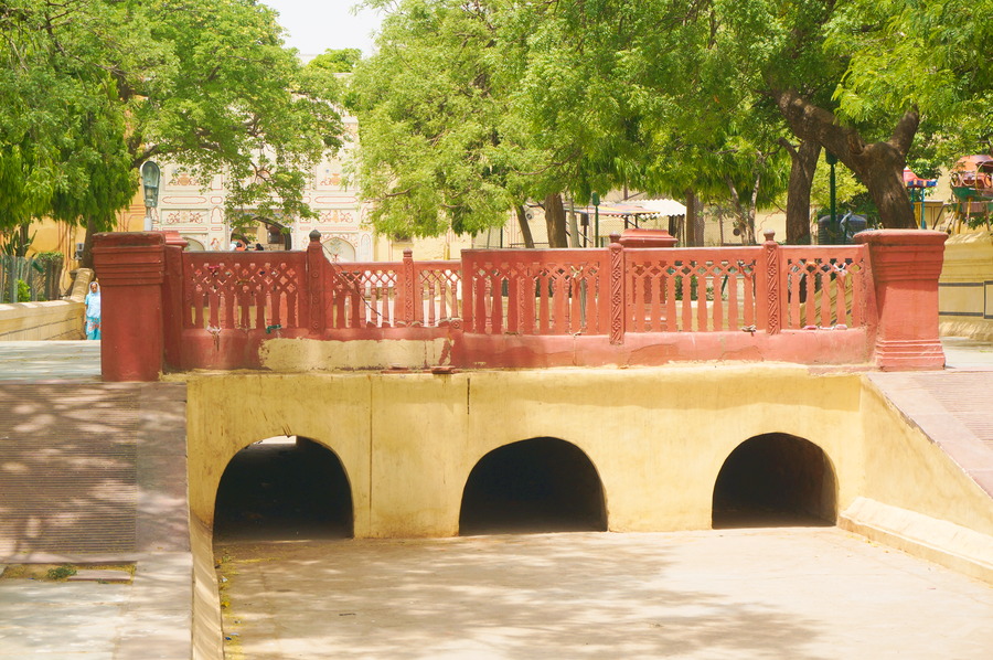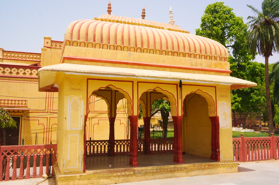 Derrière le City Palace, se trouvent les jardins Jai Niwas. Ce n’est pas très pittoresque et c’est entretenu à l’Indienne, c’est-à-dire au strict minimum mais un endroit avec des arbres et sans voitures en pleine ville en Inde mérite que nous nous y attardons! Surtout que les températures dépassent allègrement les quarante degrés et que nous sommes désespérément en recherche d’ombre. Il y a également quelques bâtiments dignes d’intérêt dans le parc.