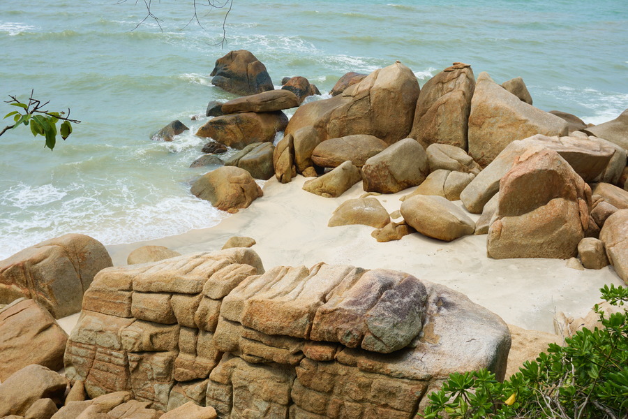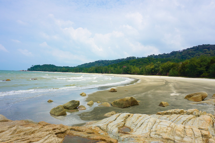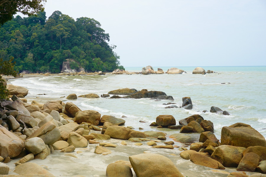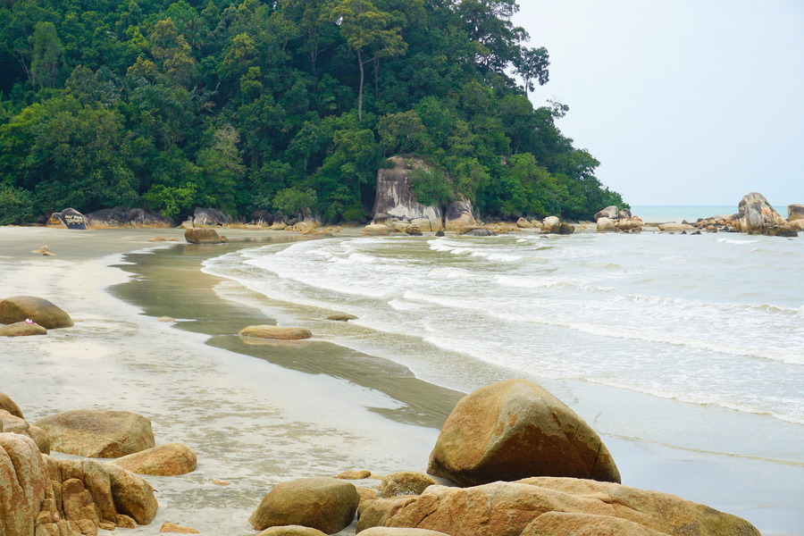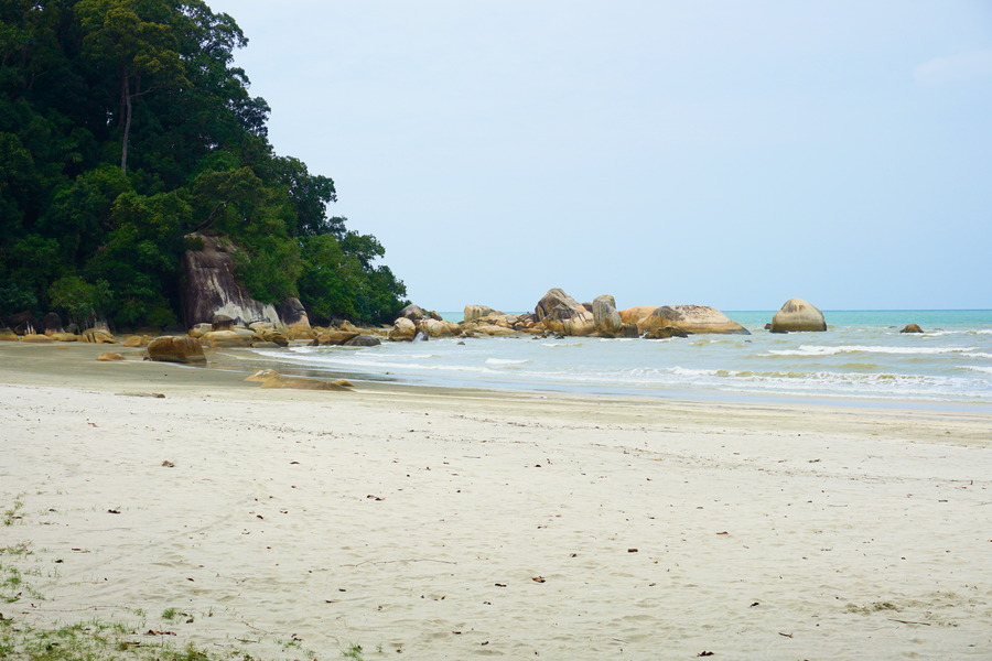 Après la passerelle, se trouve la petite plage de Teluk Tongkang. C’est une petite crique entourée de collines recouvertes de forêt tropicale. L’ambiance est vraiment tranquille. La plupart des gens restent sur Teluk Cempedak et ne s’aventurent pas sur la passerelle. Nous avons donc cette petite plage presque que pour nous, si on ne compte pas les singes, les différentes espèces d’oiseaux et les coquillages qui marchent.