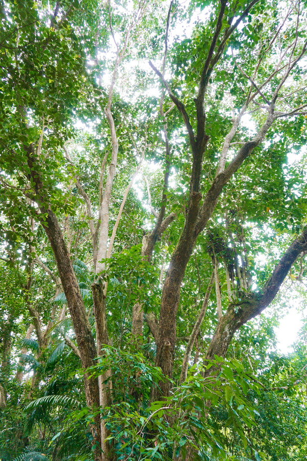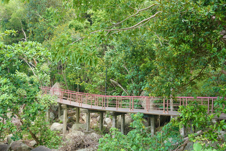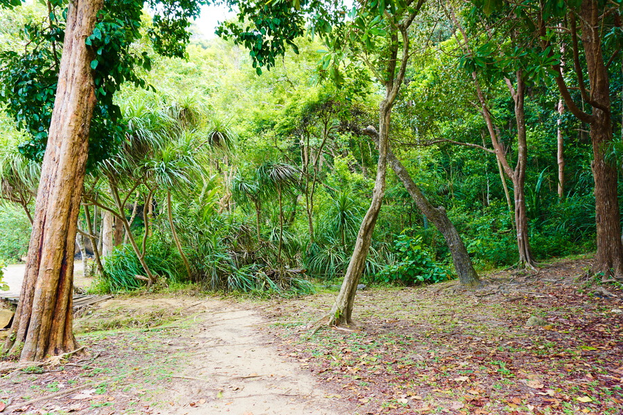 Notre balade ne serait pas complète sans une petite incursion dans la jungle! Ça tombe bien, il y a un petit chemin dans la forêt que nous nous empressons d’aller découvrir! Au menu, des dizaines de papillons vraiment superbes, les inévitables macaques, des insectes un peu chelous et des grands singes gris chevelus avec un masque blanc autour des yeux mais dont nous n’avons pas réussi à retrouver l’espèce sur Google. Nous vous rappelons qu’officiellement, nous sommes toujours en ville! Nous ne pensions pas y trouver autant de végétation ainsi qu’une faune aussi variée!