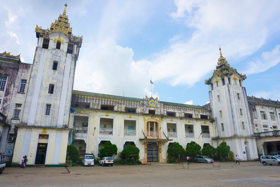 C’était le marché central durant la période coloniale. Aujourd’hui, c’est surtout un attrape-touristes! Il a été construit en 1926 par les Britanniques et fait partie du patrimoine colonial de Yangon. Il est un peu moins laissé à l’abandon que le reste des bâtiments historiques. A l’intérieur et dans les ruelles adjacentes se suivent des boutiques de souvenirs, d’antiquités et de joaillerie « government registered ». Nous ne savons pas ce que sous-entend exactement cette appellation mais, en général, si ça implique le gouvernement, ce n’est jamais bon.