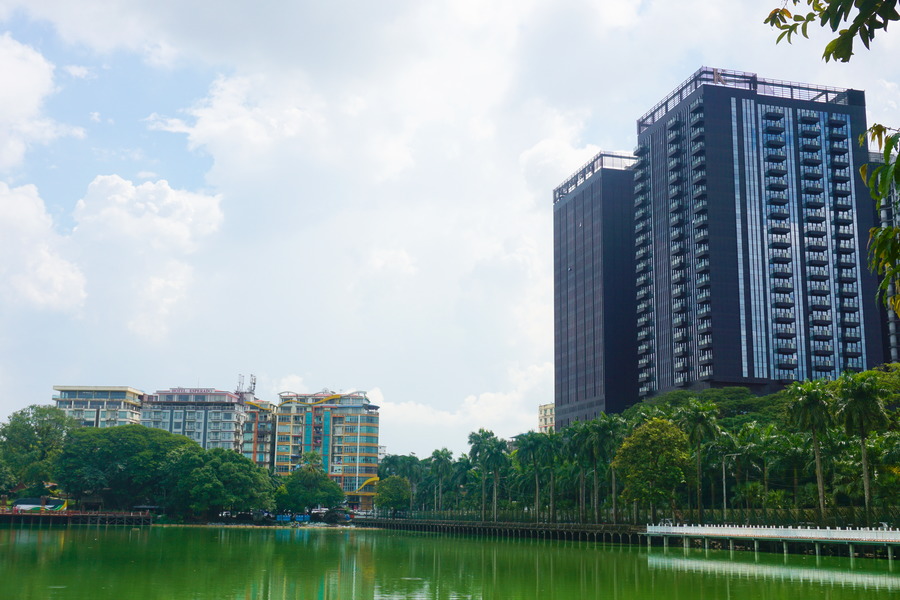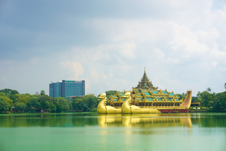 C’est un lac artificiel dont le nom signifie « Grand lac royal » qui est situé en plein centre-ville. Il a été aménagé par les Anglais pour alimenter la ville en eau. Sa surface est de 61 hectares et il est bordé par un parc de 28 hectares. C’est une vraie oasis de calme et de verdure loin de l’enfer de la ville. L’emblème du lac est le Karaweik, une magnifique réplique d’une barge royale posée sur l’eau qui représente un oiseau mythique de Birmanie. Malheureusement, le site est en travaux donc il est impossible de flâner dans le parc. Pour la petite anecdote, le Karaweik est également l’emblème de la bière Myanmar.