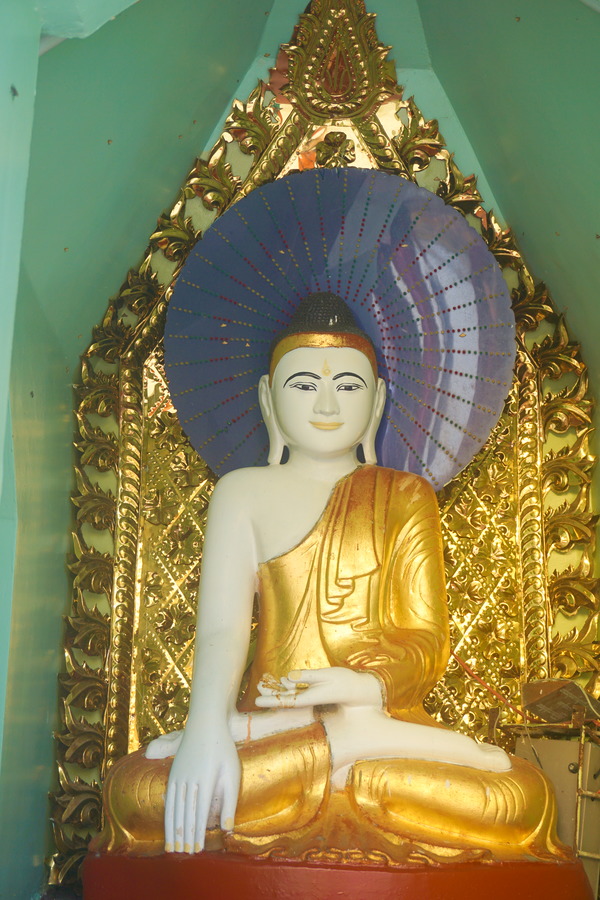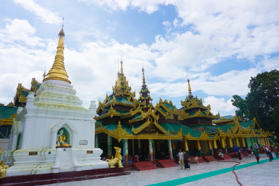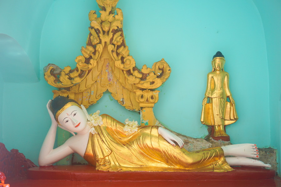 La pagode, qui date du XIVe siècle, repose sur une plate-forme de marbre de presque six hectares construite sur la Singuttara hill, une colline haute de 112 mètres ce qui permet au complexe de dominer toute la ville de Yangon. Elle compte 72 stupas . Nous pensions en avoir soupé des pagodes après avoir déjà passé quelques semaines en Birmanie mais là, nous sommes subjugués par la beauté du lieu. Impossible d’être blasé par un monument pareil!