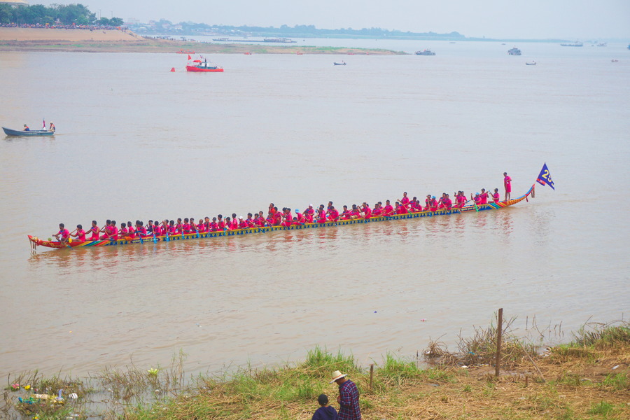 Voici la raison pourquoi tout est fermé à Phnom Penh! Le festival de l’eau est une fête très importante au Cambodge, voire la plus importante! Elle a lieu chaque année entre fin octobre et début novembre lors de la pleine lune. Phnom Penh est un haut lieu des festivités avec ses courses d’aviron sur le Tonle Sap. Tout le pays (non, ce n’est pas exagéré!) se rend pour l’occasion dans la capitale afin de soutenir l’équipe de son village ou de son district. Les réjouissances durent trois jours et se clôturent par un magnifique feu d’artifice.