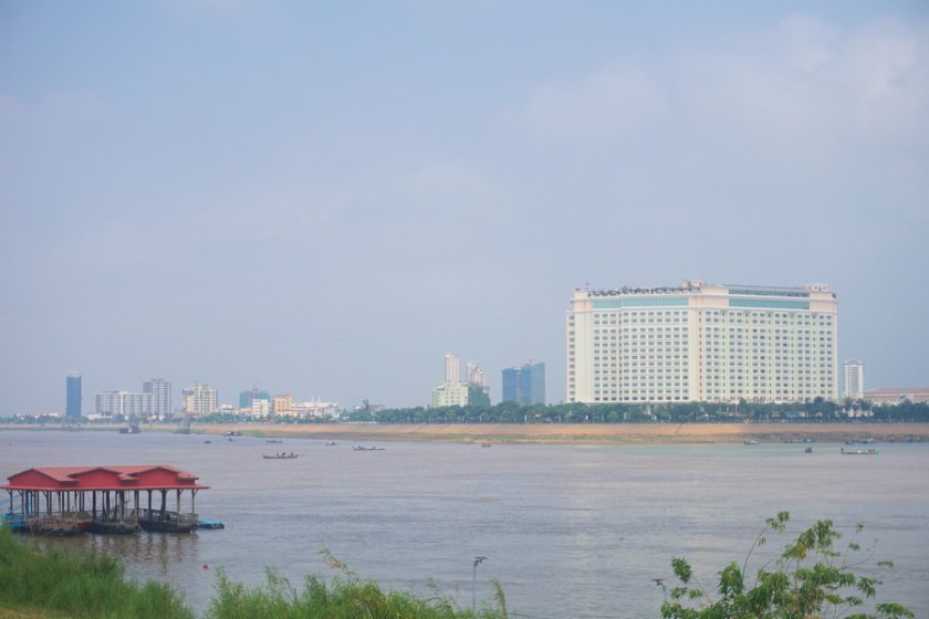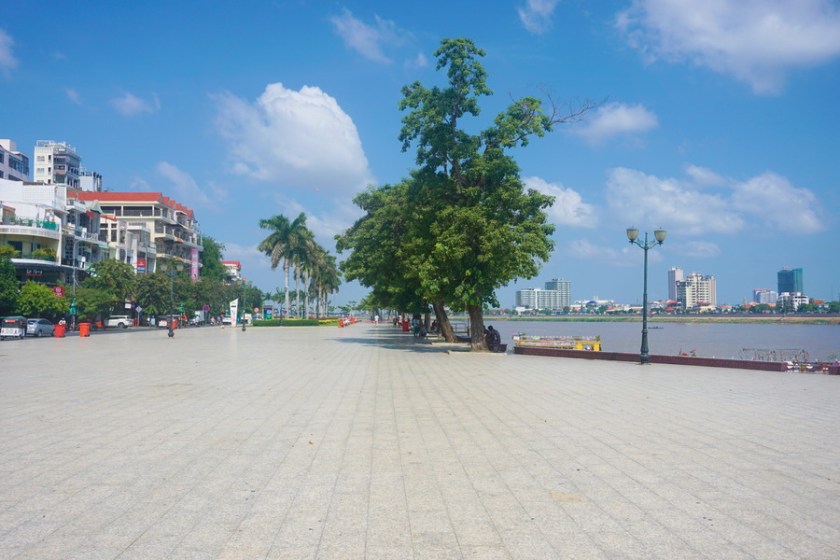 C’est en plein centre de Phnom Penh que le Tonle Sap se jette dans le Mékong créant une grande étendue d’eau au centre de la ville et un grand bol d’air frais. C’est également ici que commence la plaine de l’immense delta du Mékong qui se jette dans la mer de Chine Méridionale quelques centaines de kilomètres plus à l’est, au sud du Vietnam. Une grande promenade piétonne, qu’on doit encore aux Chinois, a été aménagée et il y est agréable de se promener un peu à l’abri de la pollution et où, parfois, les cours d’eau nous donne une petite brise bien agréable dans cette torpeur tropicale.