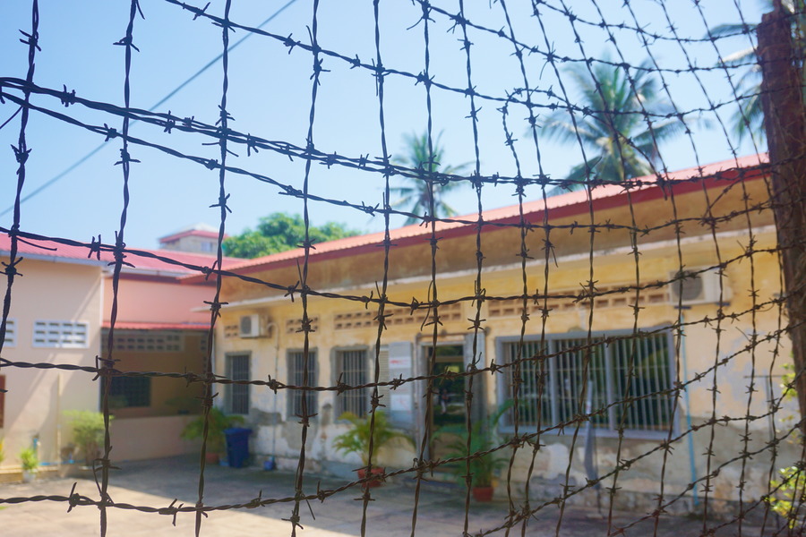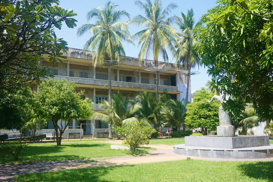L’histoire du Cambodge au XXe siècle est vraiment dramatique, encore plus dans les années 1970 lorsque les khmers rouges (l’armée révolutionnaire) étaient au pouvoir sous le joug du dirigeant Pol Pot, un dictateur sanguinaire et un des pires que l’Histoire mondiale ait connu. Pour comprendre un petit peu cette part sombre de l’histoire, nous nous sommes rendus au musée du génocide situé sur le site de l’ancienne prison S21. A la base, ce complexe était un simple lycée construit par les Français. La clique de Pol Pot en fit la prison la plus sécurisée du pays, mais aussi la plus cruelle et la plus meurtrière. Les salles de classes ont été séparées en minuscules cellules ou en salles de torture où se pratiquaient les coups de fouet, les simulacres de noyade ou encore l’électrocution dans le but de faire avouer aux détenus des crimes, souvent imaginaires, contre le pouvoir. Les fils barbelés, présents absolument partout, servaient à prévenir les suicides car seule la direction de la prison pouvait décider de la mort d’une personne. Mais les chances de survie étaient très minces, il y avait de fortes chances de se faire exécuter sous n’importe quel prétexte. Ceux qui y ont échappé sont morts de malnutrition ou de maladie. Lors de la libération de Phnom Penh par l’armée vietnamienne en 1979, les soldats ne trouvèrent qu’onze survivants sur environ 18’000 détenus durant le règne des khmers rouges. C’était une visite très enrichissante mais aussi bouleversante. Nous n’étions vraiment pas bien après la visite. Nous sommes toujours sidérés par la cruauté dont peut parfois faire preuve l’être humain. Mais nous comprenons mieux la propension des Cambodgiens à ne rien anticiper et à vivre au jour le jour. Après avoir vécu une horreur pareille, il est difficile de se projeter sur du long terme!