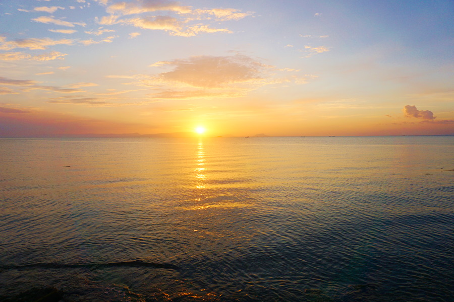 Comme Kep est construite sur un cap, il y a une ouverture sur l’ouest où nous pouvons observer un magnifique coucher de soleil. Les collines derrières lesquelles se cache le soleil se trouvent sur l’île vietnamienne de Phu Quoc