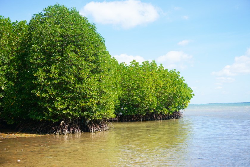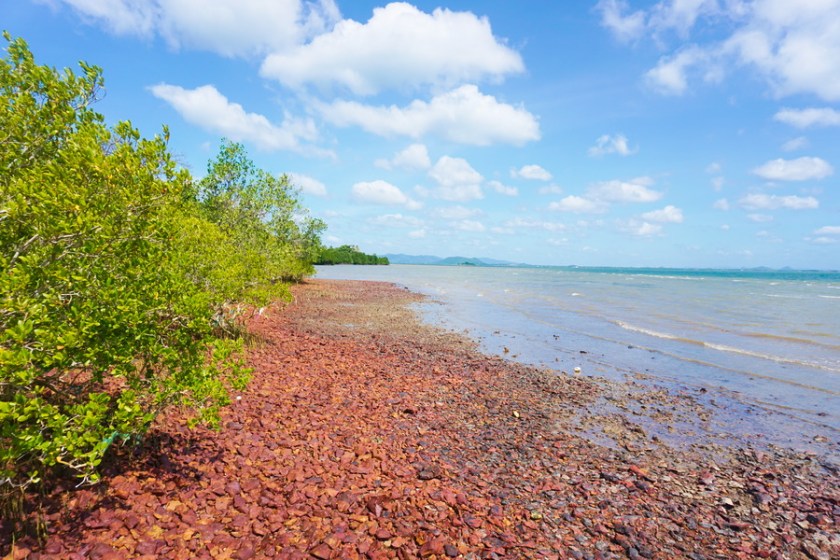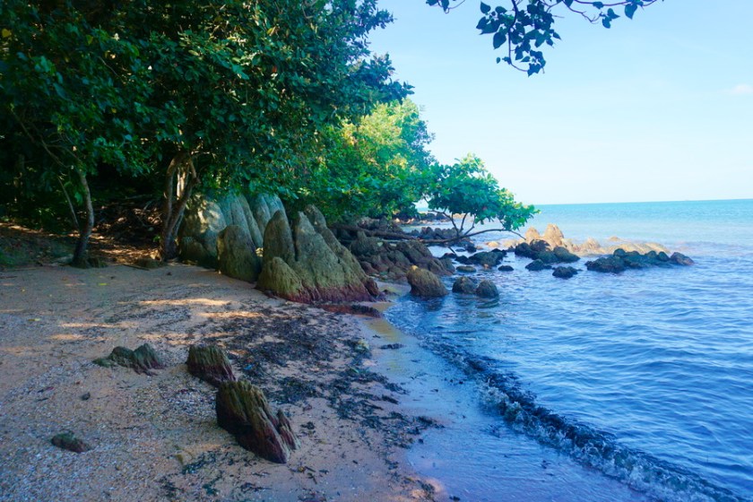 Nous avions entrepris d’effectuer un tour d’ile à pieds mais c’était sans compter sur une mangrove très dense et impraticable qui nous a bloqué la route. Nous avons donc dû rebrousser chemin mais nous avons eu le temps d’admirer la flore et la faune du lieu car, à part quelques bungalows et cafés à l’arrivée des bateaux, l’île est complètement laissée à l’état sauvage. C’est une bonne nouvelle pour les mangroves car elles sont dans un très bon état. Malheureusement, ça n’empêche pas la mer de rejeter les déchets sur le rivage.