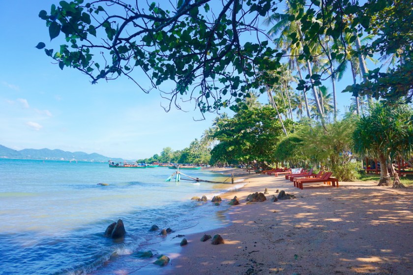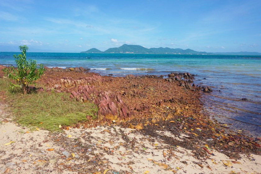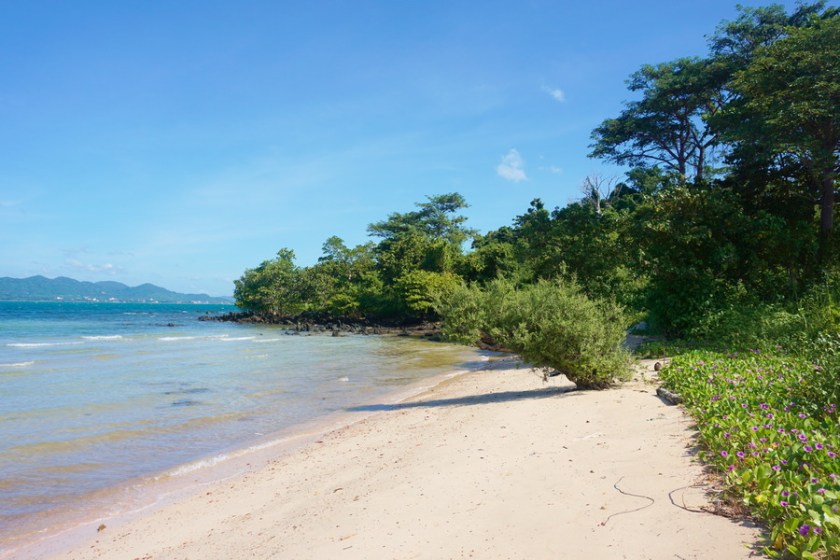 Comme la randonnée est compromise, nous avons profité des différentes plages de l’île. Il n’y a pas beaucoup de monde qui se rend sur Koh Tonsay donc certaines plages sont complètement désertes. Ce n’est pas la plage de rêve de sable blanc car, avec la proximité des mangroves, les fonds sont un peu vaseux mais l’eau est vraiment claire et à température parfaite pour la baignade.