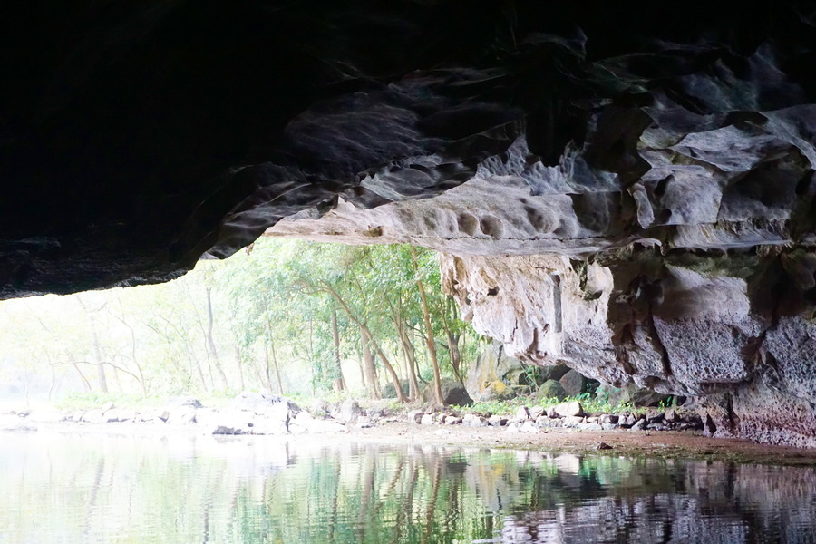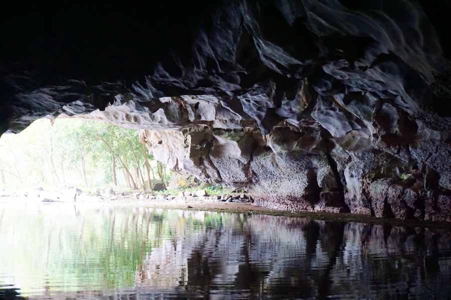 Il nous faut traverser plusieurs grottes durant le parcours. D’ailleurs, Tam Coc signifie en vietnamien « les trois grottes ». C’est en passant sous ces monstres de pierres que nous prenons conscience de l’ampleur du travail de la nature sur des années au gré des phénomènes météorologiques. Traverser ces cavernes a vraiment été sympa car la température y est bien plus douce qu’à l’extérieur! Ces grottes sont assez ouvertes sur l’extérieur et ne devraient pas être trop étouffantes pour les claustrophobes. Van, qui n’aime pas les lieux clos, ne s’y est pas trouvée trop oppressée.