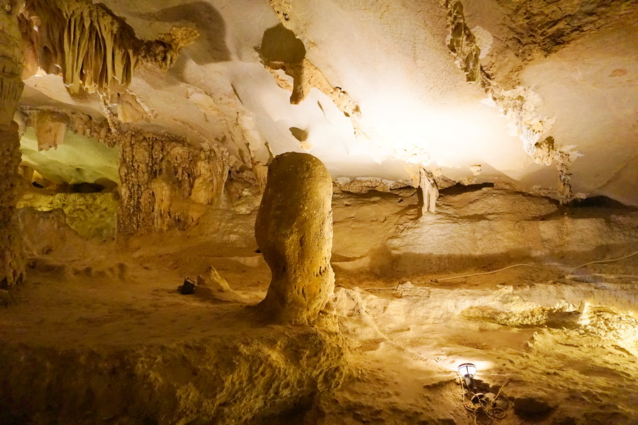 A l’intérieur, c’est une succession de stalactites et de stalagmites formées par des années d’érosion. Ce qui nous a vraiment plu, c’est la température, bien pus agréable qu’à l’extérieur! Par contre, les grottes sont assez fermées et c’est beaucoup plus oppressant qu’à Tam Coc.