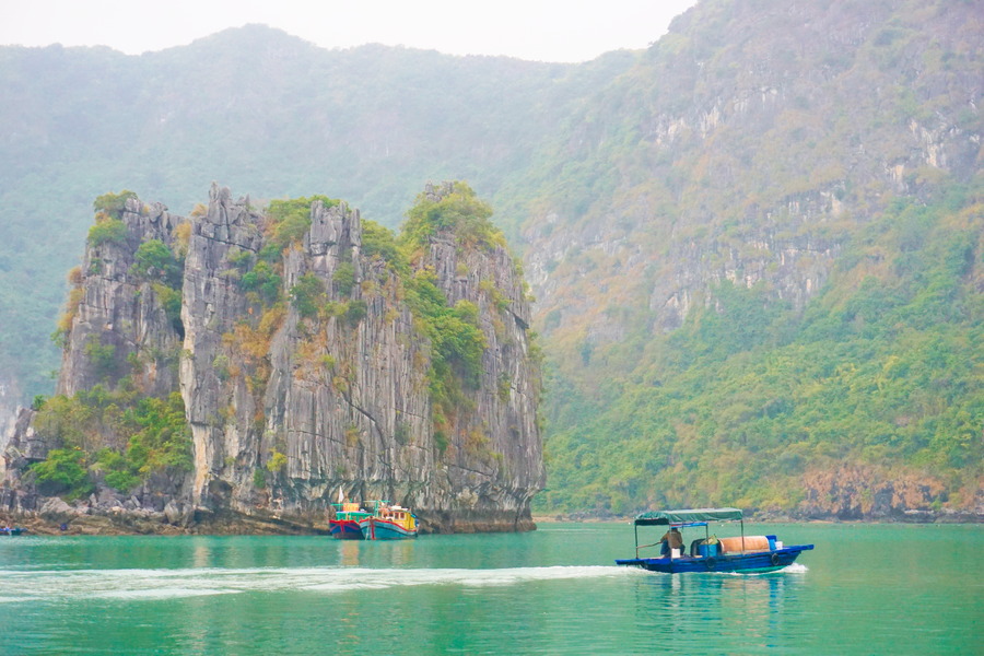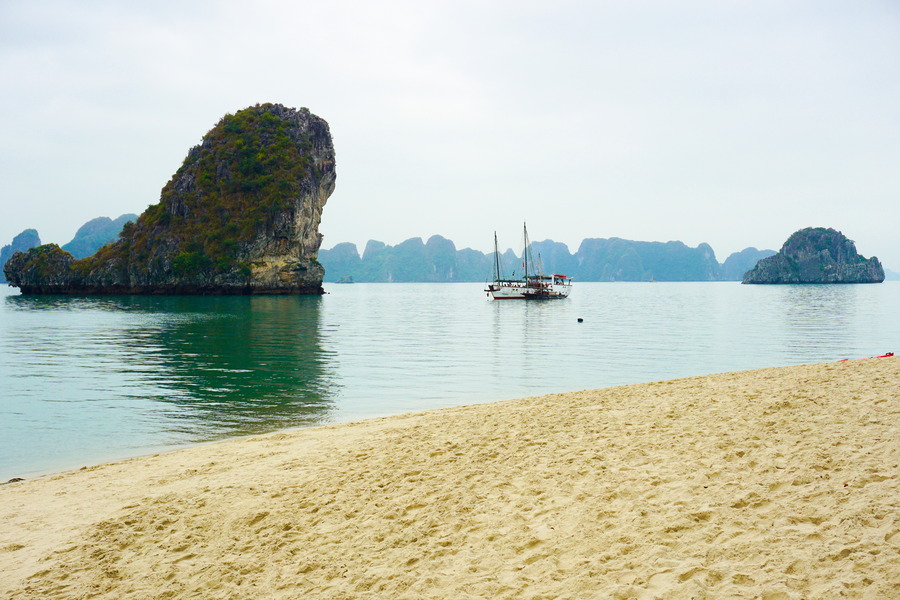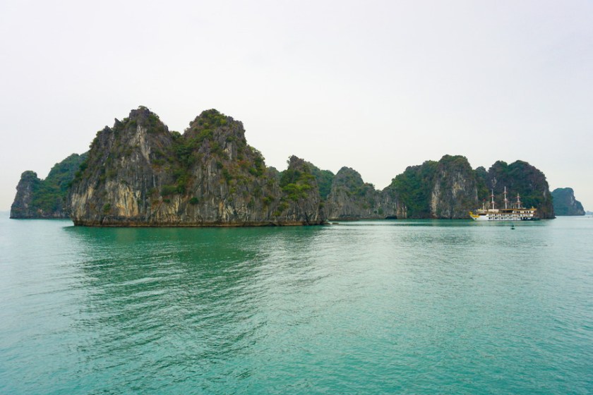 Qui n’a jamais rêvé à l’évocation de la baie d’Halong? Cette baie naturelle du golfe du Tonkin composée de près de deux mille îles karstiques composées de calcaire et s’étendant sur 43’000 hectares? Nous, nous en rêvions depuis longtemps. Nous en rêvions tellement que nous appréhendions d’y aller de peur d’être déçus, surtout que ces dernières années, les visiteurs ont été virulents dans leurs critiques. (montagnes de déchets, hordes de touristes, trop de bateaux, etc…). Nous ne sommes donc pas totalement sereins et réjouis quand nous embarquons sur le bateau qui nous fera découvrir cette beauté naturelle pendant deux jours et une nuit.