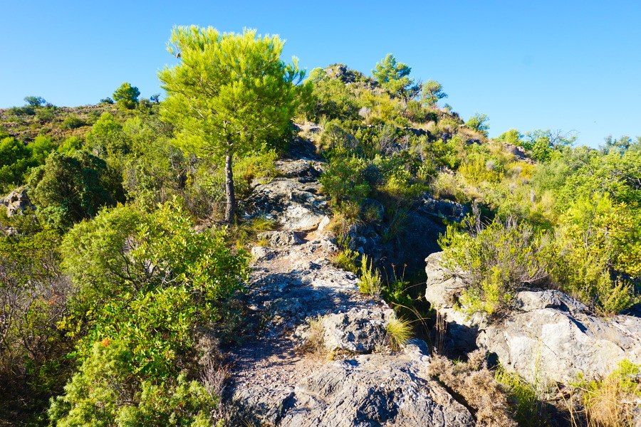 Ce n’est pas cette fois que nous allons échapper à notre traditionnelle grimpette. Tant mieux, car nous adorons ça même si 135 petits mètres de dénivelé restent une petite balade pour nous! Mais le paysage de roche, de maquis et de pinède est vraiment sympa et apporte une petite touche de difficulté à la promenade.