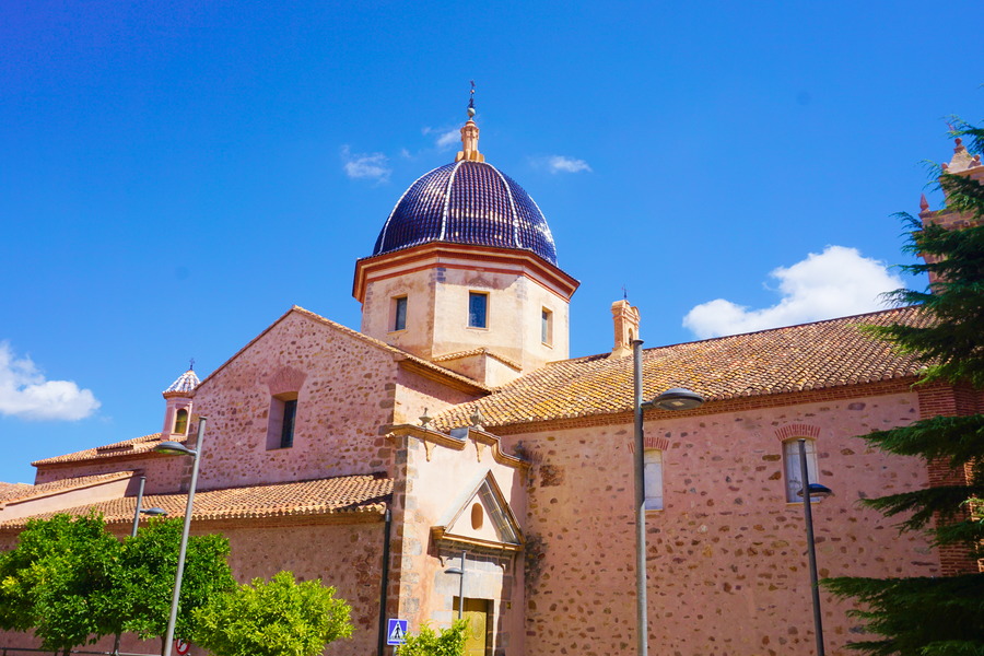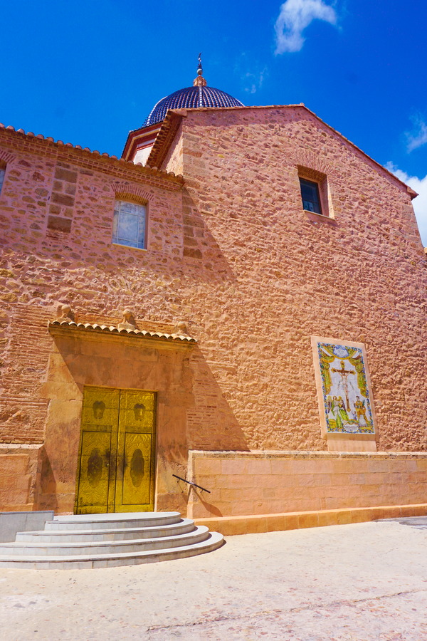 C’est le seul bâtiment historique encore debout et en bon état de la ville. Comme les petites ruelles médiévales ont toutes disparu après la reconstruction de Vall d’Uixo, l’église a droit à sa propre place et n’est pas coincée au cœur d’un centre historique trop petit pour elle. Elle a été construite entre les XVII et XVIII, donc assez tard, et est de styles baroque et néoclassique, un fait assez rare dans une région plutôt habituée au gothique valencien. Elle est reconnaissable de loin grâce à sa magnifique coupole en tuiles bleues typique de la région.