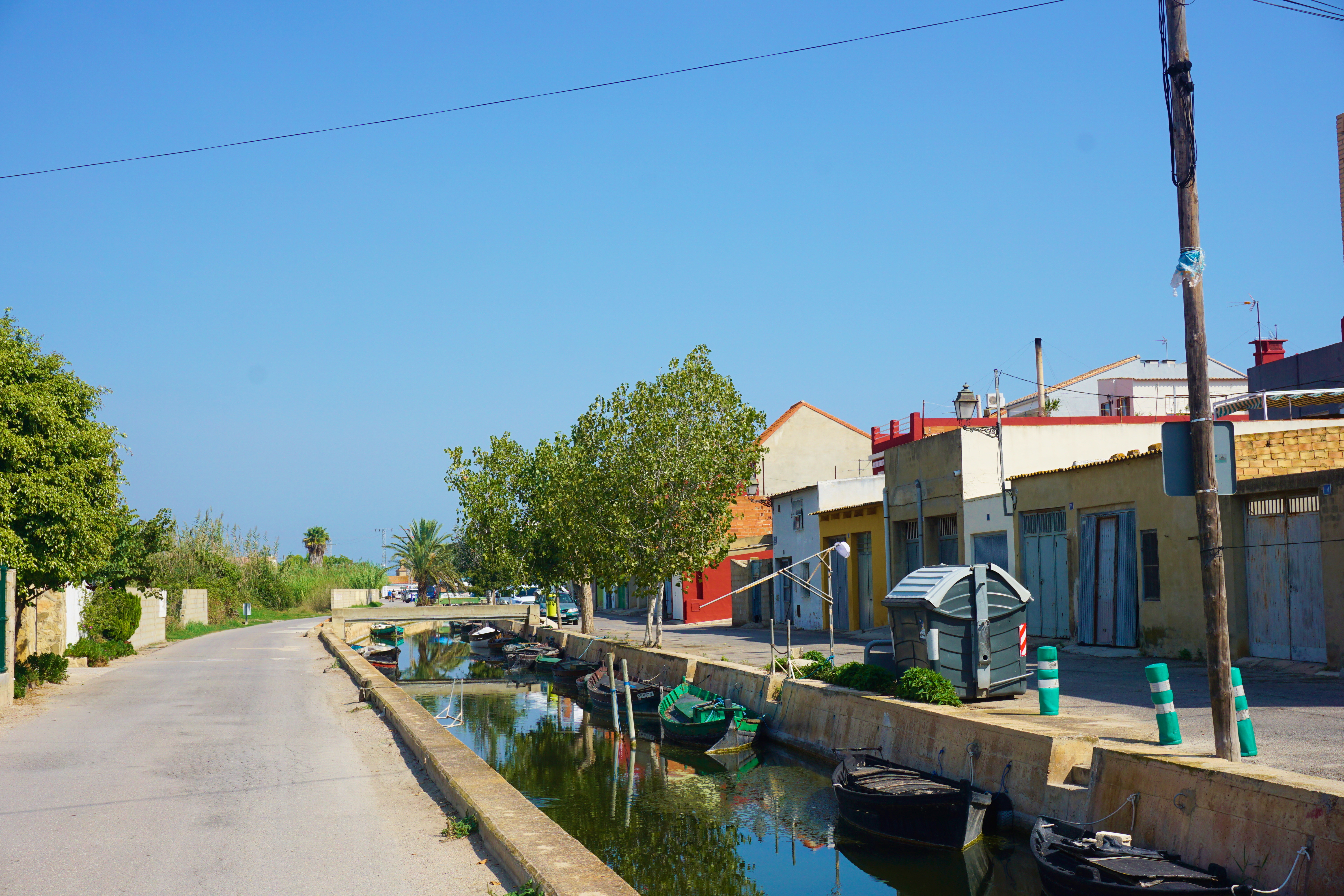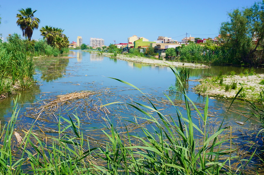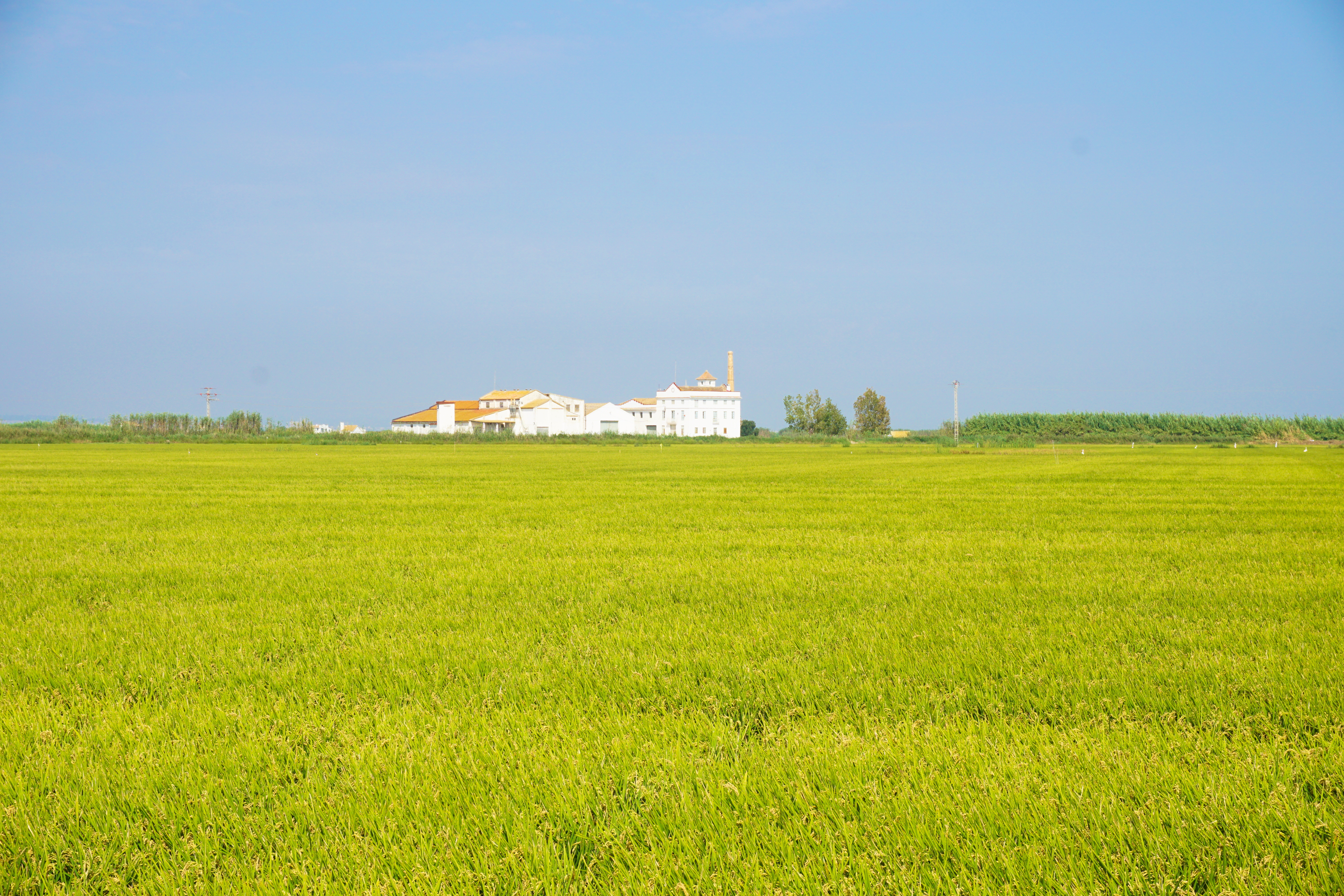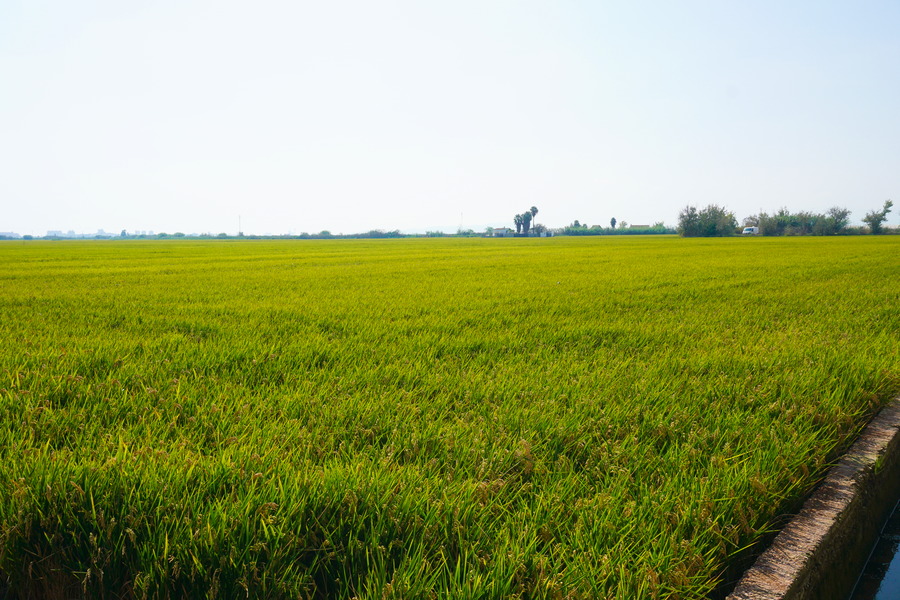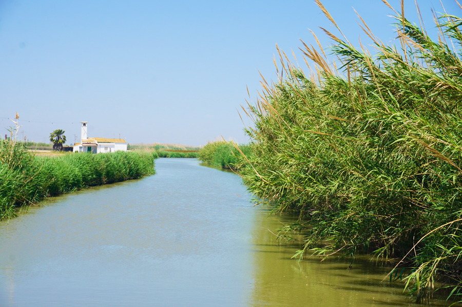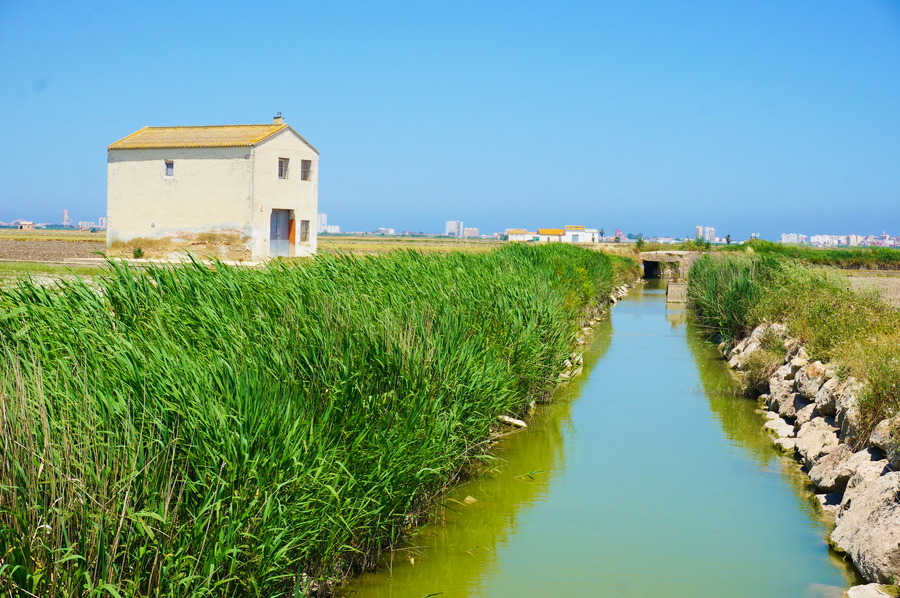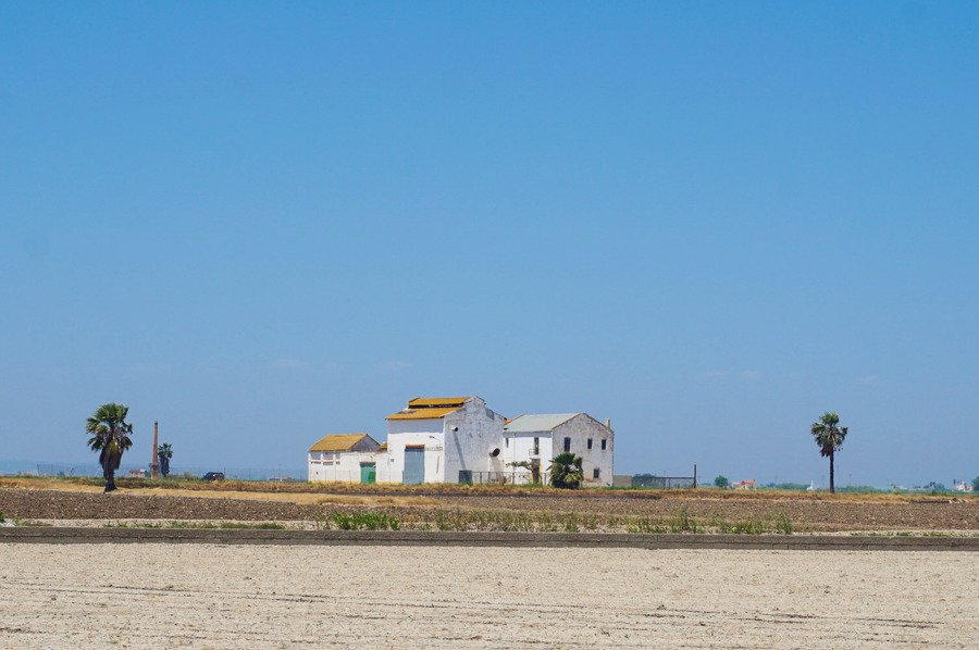 Le paysage ressemble beaucoup à El Palmar avec ses rizières à perte de vue et ses canaux d’irrigation, appelés sequias, qui nous font plus penser aux plaines du Cambodge qu’à la côte méditerranéenne. En cette saison (au printemps), les champs sont arides car nous sommes en période de semis mais d’ici quelques semaines, les vannes des canaux seront ouvertes et la plaine sera joliment inondée.