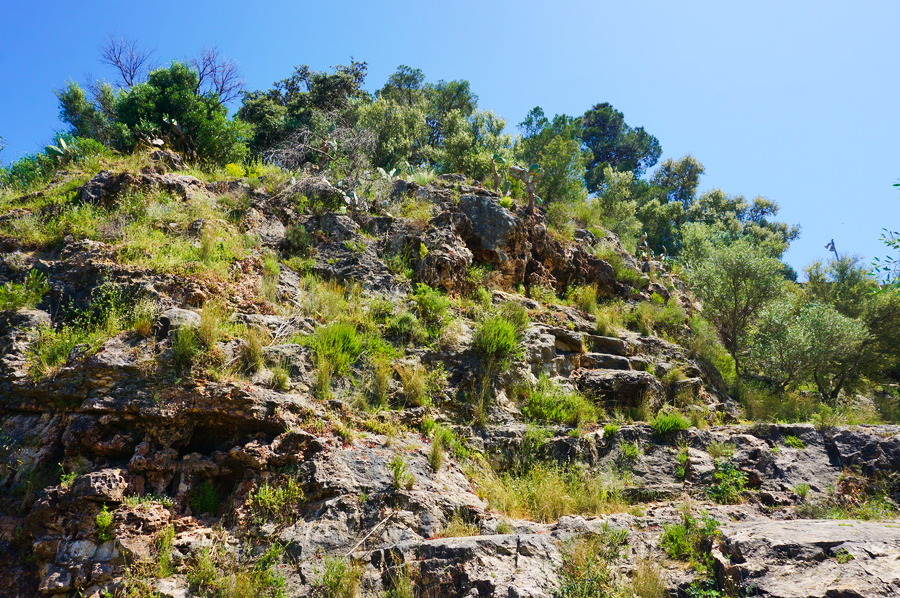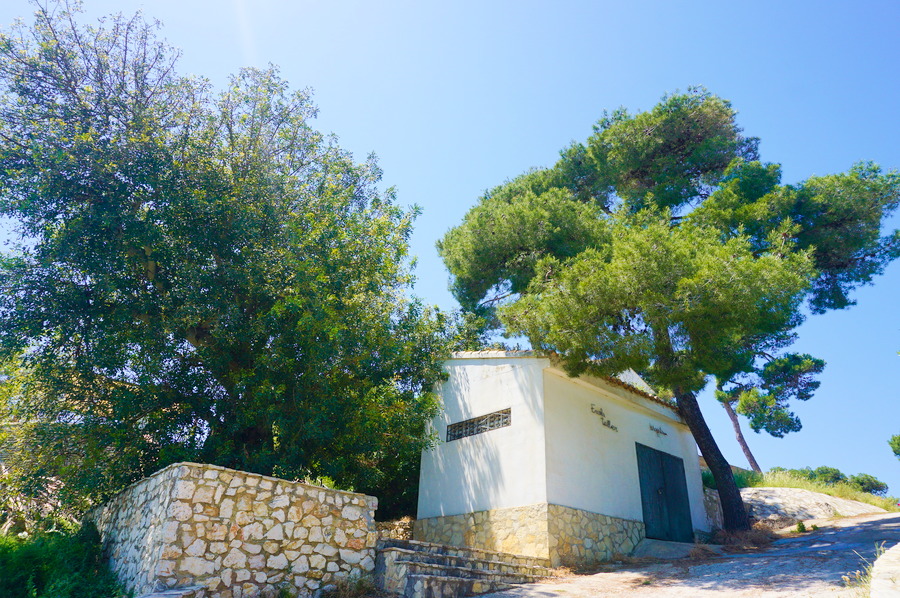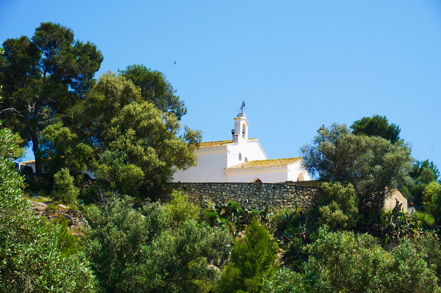Nous avons quand même trouvé un endroit pas trop plat dans l’Albufera! Ce petit promontoire rocheux de vingt-sept mètres sorti de nulle part au milieu de l’immense plaine qui l’entoure abrite une réserve de flore de Méditerranée dont des oliviers et des pins parasols qui nous offrent une ombre bienvenue. Au sommet, se trouve un petit ermitage du XVIIe siècle mais, lors de notre passage, il y avait une cérémonie religieuse et nous n’avons pas voulu déranger cet instant solennel. Ce n’est pas la première fois que nous sommes victimes d’un mauvais timing dans ce genre d’endroit!