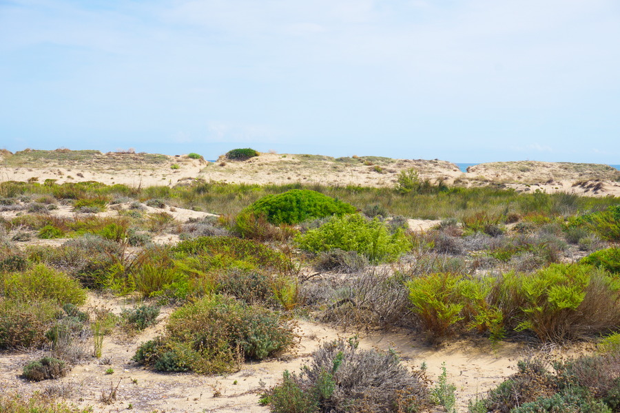 Une autre particularité de la réserve, ce sont les dunes. Ce sont des dunes dites « fixes » car elles sont de formation rocheuse et ne se détruisent pas au premier coup de vent. Les dunes formées uniquement de sable sont appelées « dunes mobiles », mais il n’y en a pas dans l’Albufera. Elles mesurent en moyenne six mètres de haut.