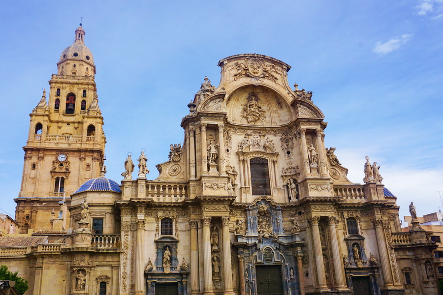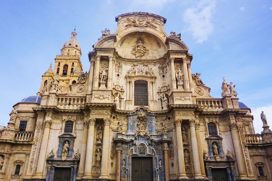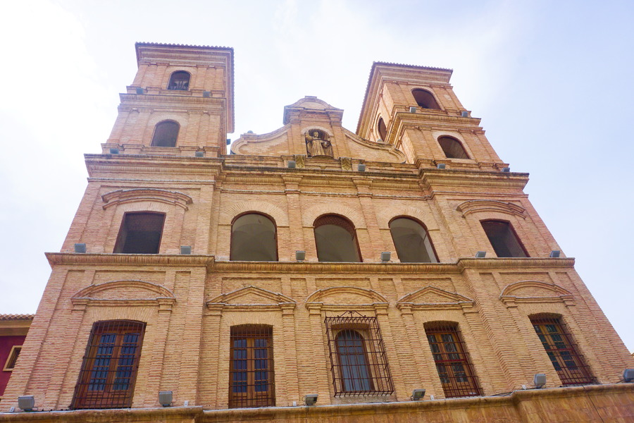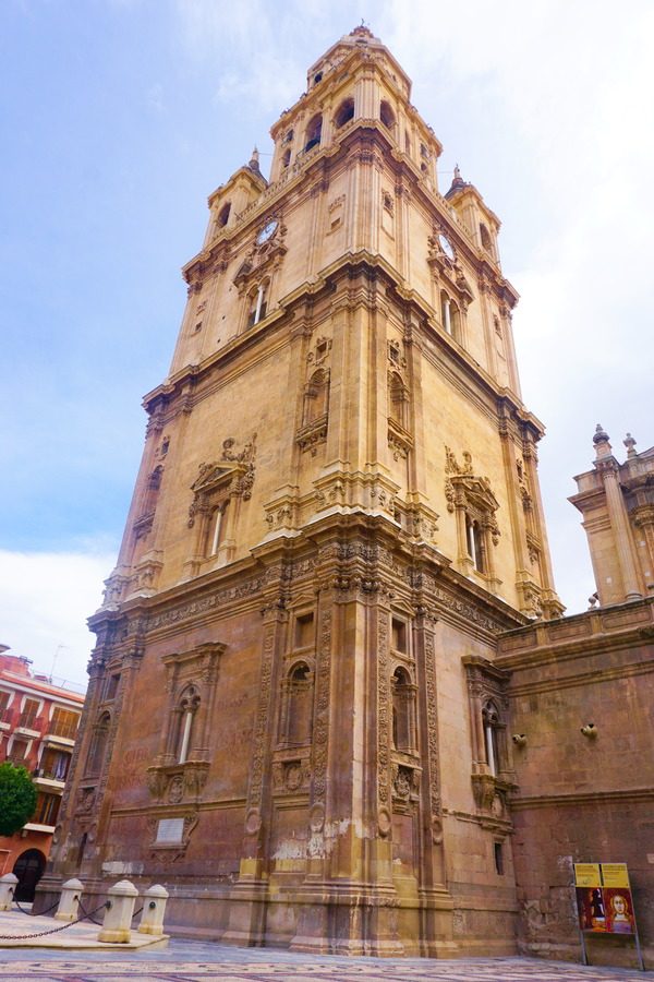 Nous en avons vu des cathédrales mais celle-ci peut sûrement prétendre au titre d’une des plus belles cathédrales d’Espagne! Avec presque toutes les autres! Et peut-être une des plus grandes! Nous pouvons aisément deviner les différents courants architecturaux qui ont orné l’édifice à travers les siècles. L’histoire est la même que dans pratiquement toutes les villes du sud du pays. Il y avait à cet emplacement une mosquée et quand le fameux Jaime I (oui, encore lui!) est venu conquérir Murcia, il a ordonné de la transformer en temple chrétien. C’était au XIIIe siècle. La première construction fut de style gothique comme c’était de coutume à l’époque puis se sont ajoutés des détails Renaissance et baroques. Le bâtiment principal est déjà balèze en soi mais le campanile, c’est carrément un truc de malade! C’est une haute tour haute de 98 mètres, la deuxième plus grande d’Espagne après la Giralda de Séville! En 1519, on profita de la présence à Murcia de l’architecte italien Francisco Florentino pour lancer ce projet un peu fou de campanile. Les travaux débutèrent deux ans plus tard pour ne se terminer que deux siècles plus tard! Mais le résultat est à la hauteur des espérances, dans tous les sens du terme!