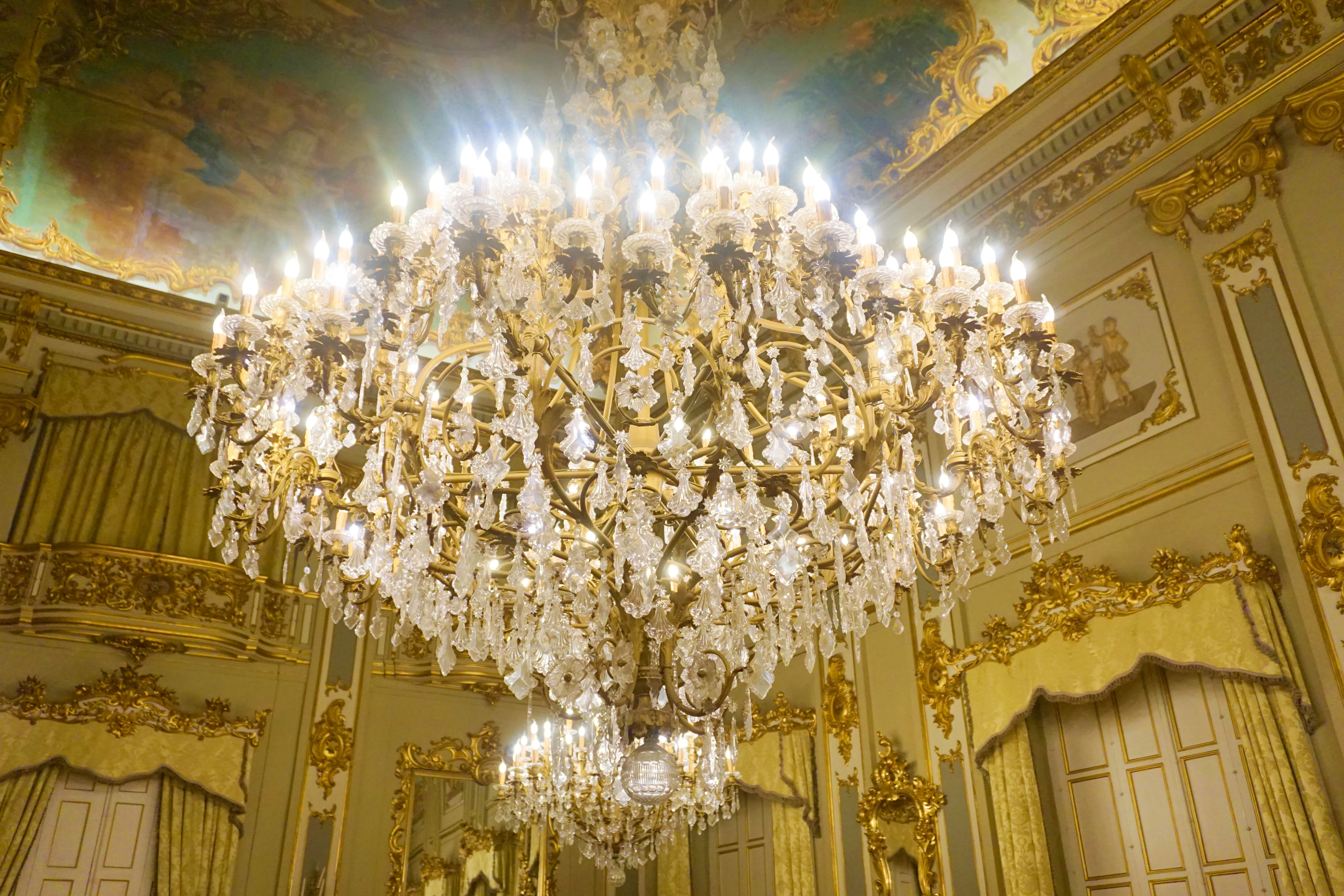 L’époque n’est pas du tout la même mais toutes ces moulures, le mobilier et les lustres ne sont pas sans rappeler Louis XIV et son château de Versailles. Dans ce style, on trouve la salle de bal, son antichambre et le vestiaire des dames.