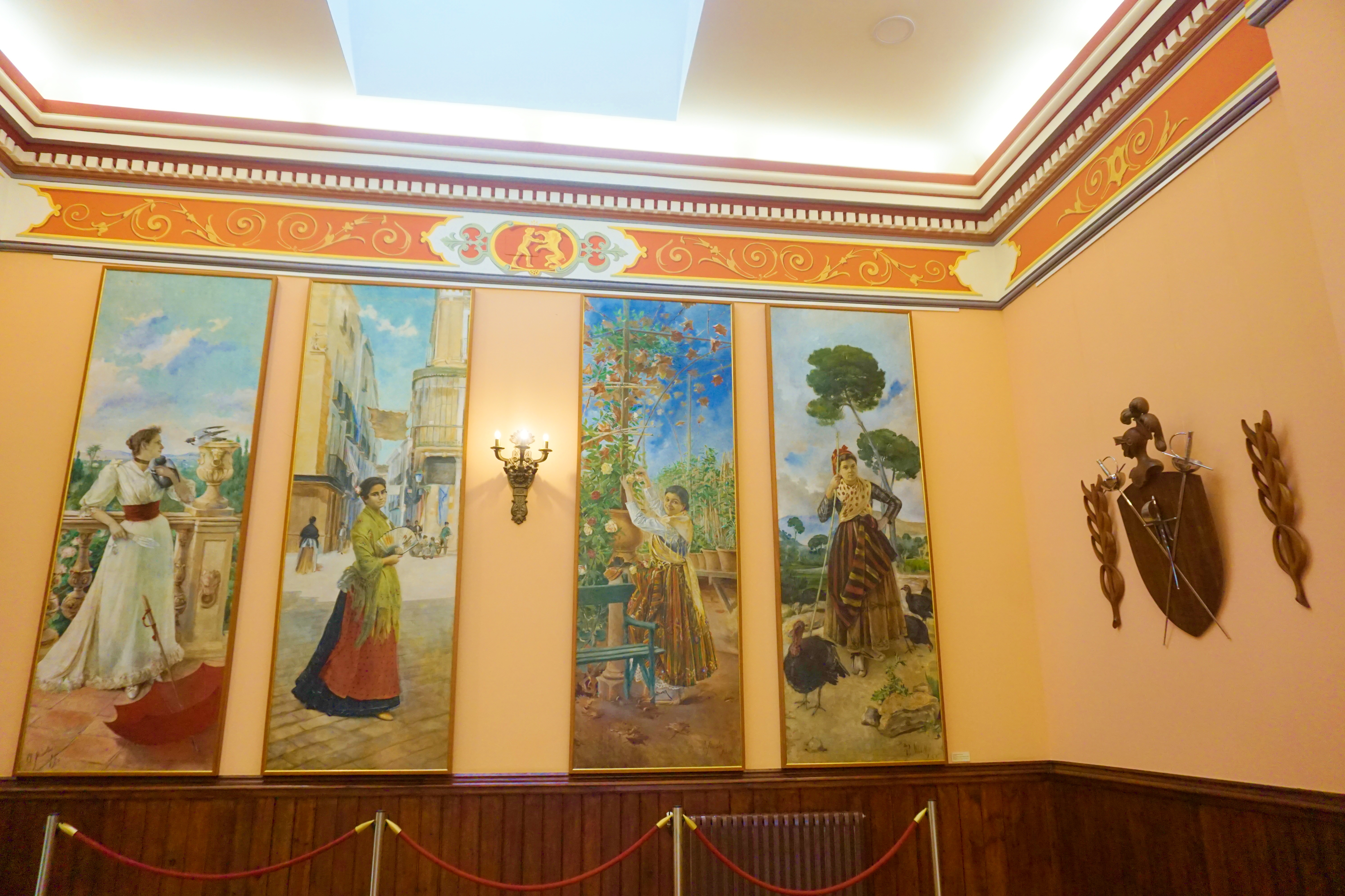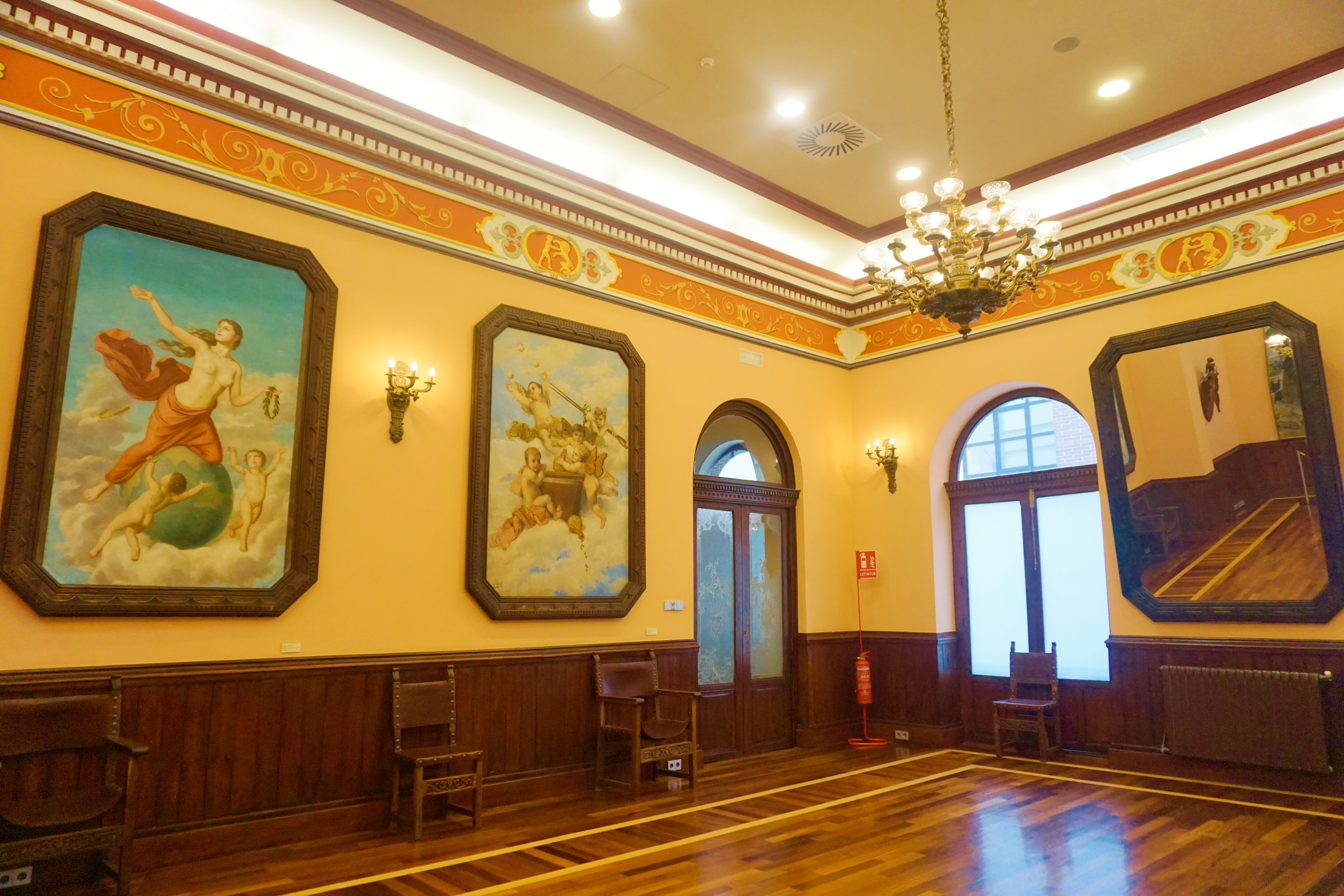 On retrouve un côté so british avec la bibliothèque et la salle de chasse, bien que cette dernière soit décorée avec des tableaux de peintres espagnols du XIXe siècle. Dans ces deux salles, se rencontraient les personnes influentes pour l’économie de la ville de Murcia. Les dames, elles, avaient le droit de se détendre dans le salon de thé.