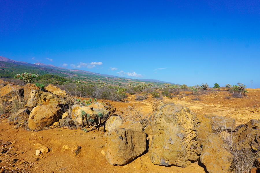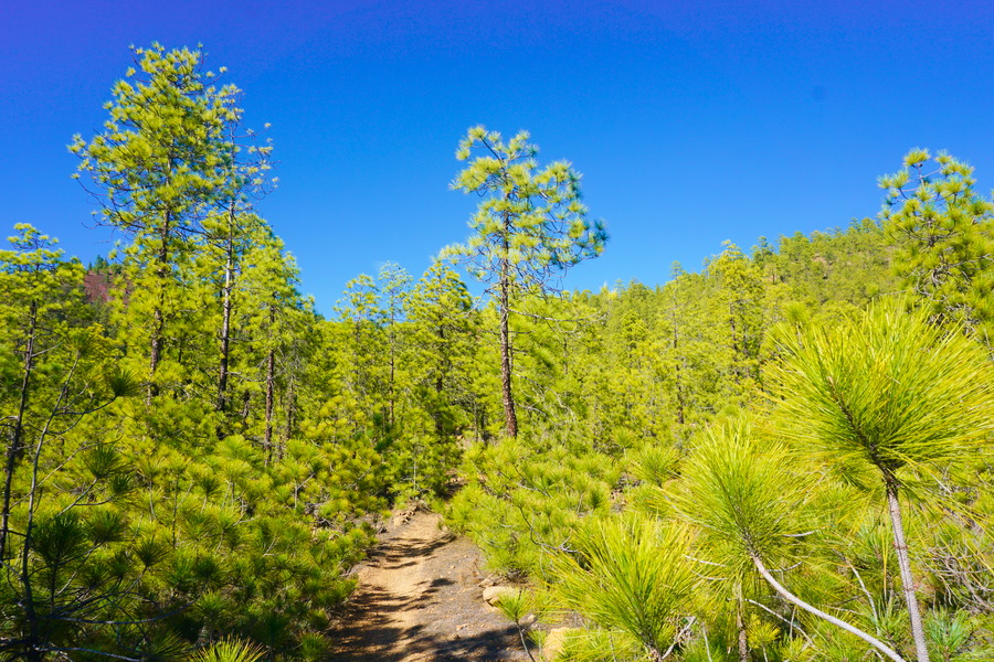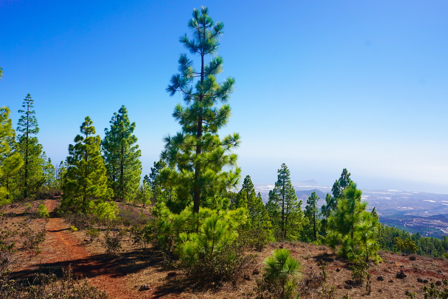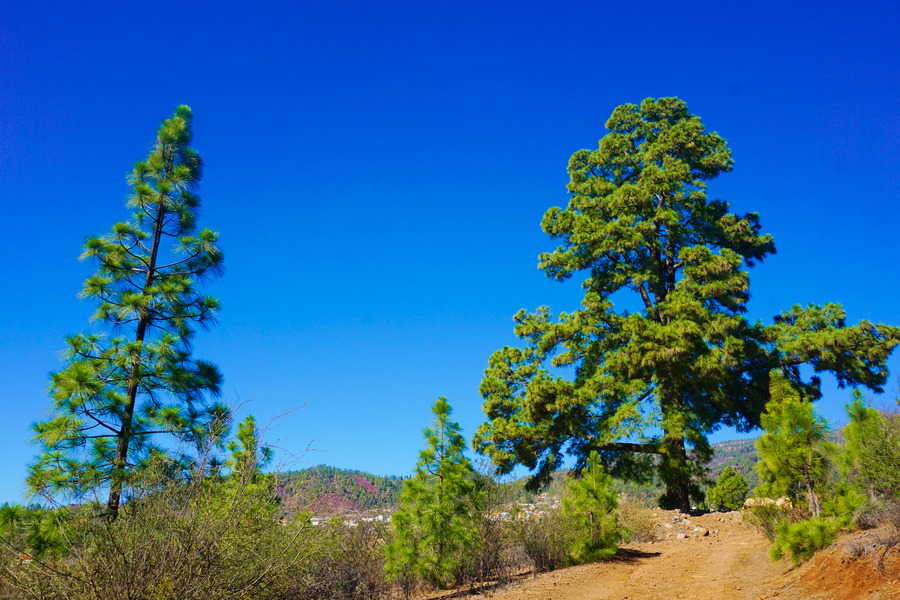Passer l’hiver dans un endroit influencé par le désert du Sahara alors que nous sommes des amoureux de forêts luxuriantes, c’est un comble! Le sud de Tenerife a un climat semi-aride et ça se voit dans la végétation qui dépasse rarement le mètre de haut, quand il y en a! Pouvoir nous promener dans une forêt de pin des Canaries, c’est un peu Noël en avance pour nous! Bon d’accord, ça reste très sec et les arbres sont assez clairsemés mais pour la région située au sud du Teide, c’est presque la jungle. Du coup, le paysage ressemble plus à une pinède du bassin méditerranéen qu’à un archipel volcanique perdu au milieu de l’océan Atlantique.