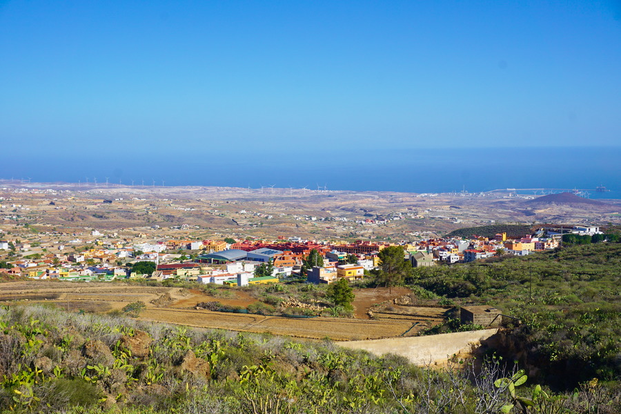 La fin de la balade est un peu moins sauvage mais tout aussi belle. Nous traversons le petit hameau de Cruz de Tea avant de descendre à travers les cultures sur Granadilla de Abona qui sera notre point d’arrivée.