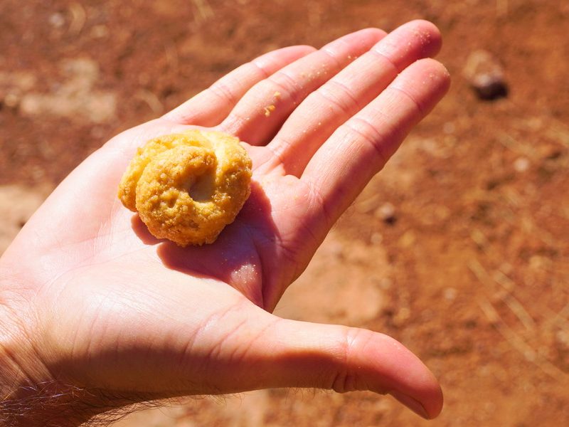 Nous avons trouvé cette petite douceur sous le label « Compro Canario » (littéralement « j’achète canarien ») lors de notre départ de rando à Santa Catalina. C’est une « rosquete », littéralement « petite roue », un biscuit de Noël typiquement canarien élaboré avec de la pâte feuilletée et parfumé à l’anis. C’est un dessert idéal après notre pique-nique idyllique au sommet de la Montaña Colorada. Nous n’avions plus parlé de bouffe depuis au moins quatre articles! Avouez que vous commenciez un peu à vous en inquiéter!