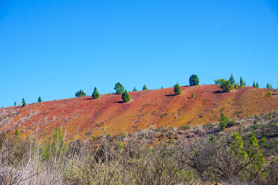 - Difficulté : moyen, c’est de la caillasse comme souvent à Tenerife. La première descente depuis le sommet de la Montaña Colorada est vraiment raide mais ne dure qu’une petite centaine de mètres. Une partie du chemin est masquée par un tapis d’aiguilles de pin, il faut juste être prudent à proximité des barrancos.