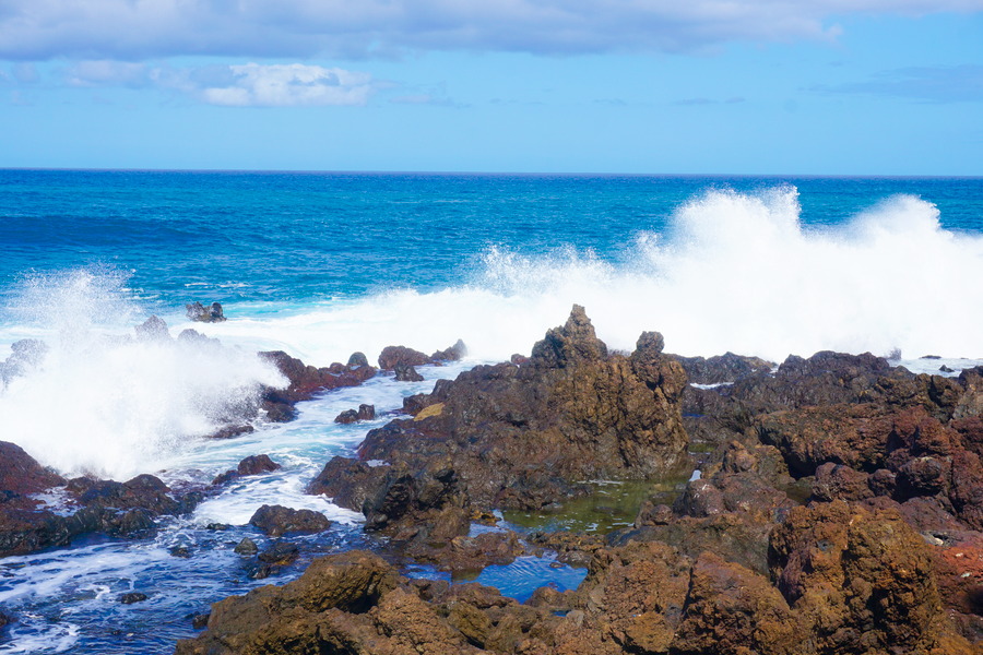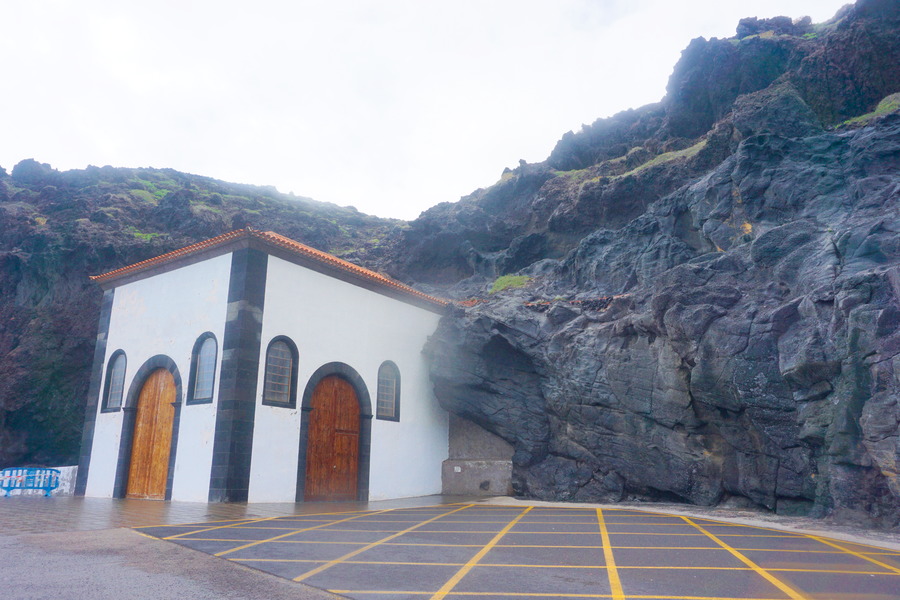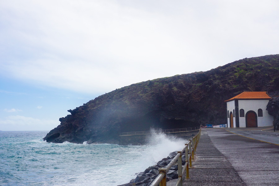 Cette grotte creusée dans la roche volcanique a plus une importance symbolique que géologique même si elle est impressionnante. C’est ici que serait apparue la Vierge Marie au peuple guanche mais l’endroit était déjà un lieu de culte païen bien avant la christianisation. Il y a une statue en bronze de la Vierge à l’intérieur mais nous n’avons pas pu y accéder pour cause de travaux. De toute façon, avec les vagues qu’il y a, nous nous serions faits trempés. C’était un grand lieu de pèlerinage catholique avant la construction de la basilique quelques mètres en amont. Le petit ermitage à l’entrée de la grotte date de 1790 et est le tout premier édifice de culte chrétien érigé dans l’archipel des Canaries.