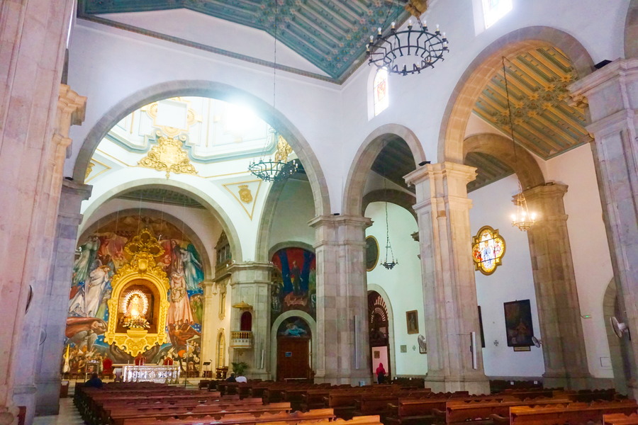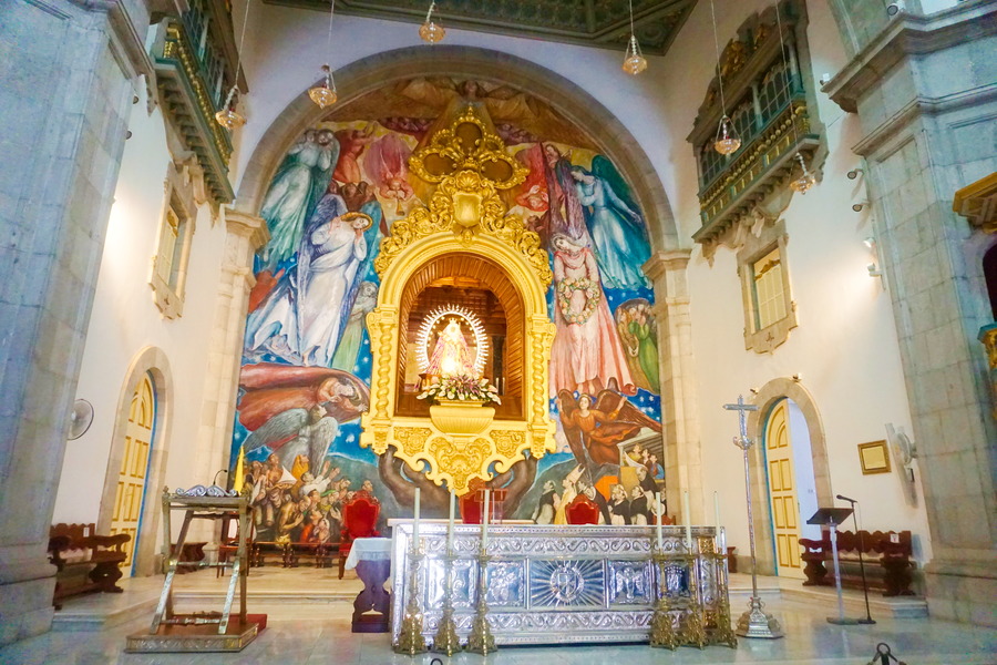 L’intérieur paraît sobre au premier abord mais les fresques sont vraiment admirables. La Candelaria est le plus grand sanctuaire catholique des Canaries et même un des plus grand d’Espagne. Elle accueille, hors période Covid bien sûr, plus de deux millions et demi de pèlerins par an, plus les touristes de passage comme nous. Avec la situation sanitaire et la météo maussade du jour, nous avons trouvé un lieu presque vide. Nous avons vraiment de la peine à imaginer cet endroit rempli de fidèles.