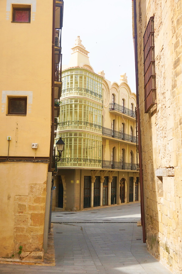 Malgré sa taille modeste, Tortosa possède un centre historique digne de ce nom! L’ambiance est déjà toute catalane avec des hautes maisons typiques à persiennes, une architecture gothique et quelques exemples du modernisme catalan. Fab prétend que la Catalogne c’est un peu l’Italie de l’Espagne. En effet, ça se tient : c’est plus raffiné, plus esthétique, la gastronomie est plus fine et l’accent est plus chantant quand ça parle castillan. D’ailleurs le catalan et l’italien sont deux langues très similaires pour leur grammaire et leur prononciation.