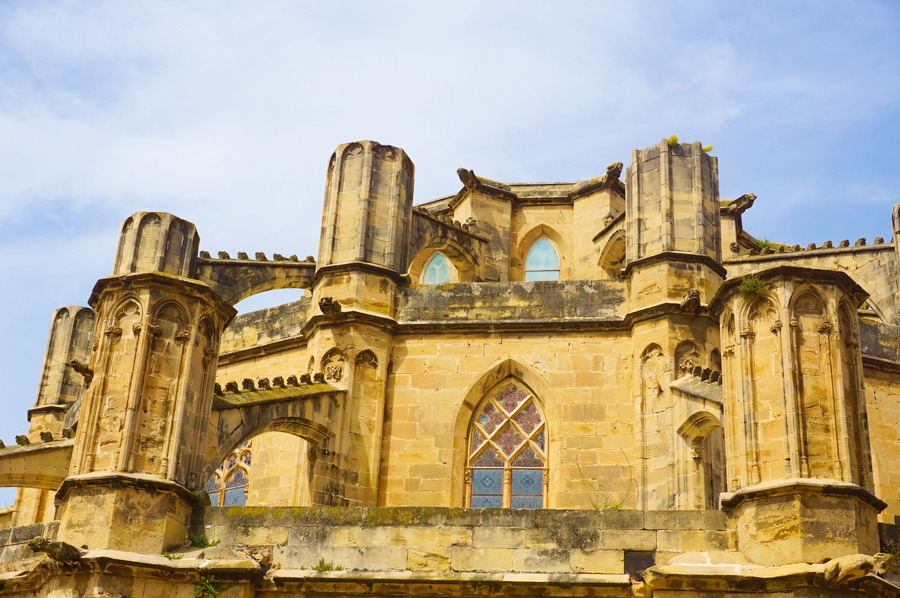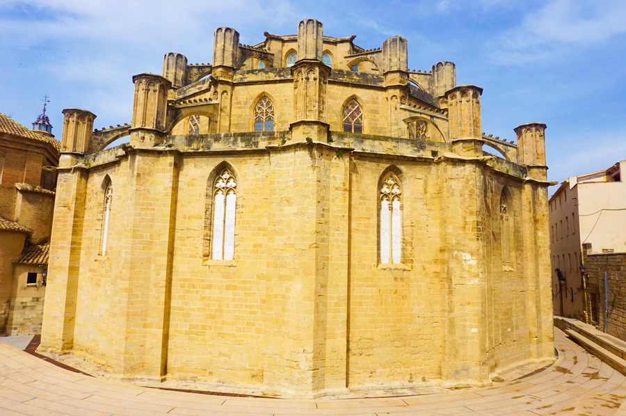 Ce monstre gothique surplombant l’Ebre est la cathédrale Santa Marta construite entre les XIVe et XVIe siècles. Vue d’en haut, elle paraît particulièrement massive à cause de son toit plat s’étalant sur trois niveaux. Elle se situe au cœur du centre médiéval au pied de la forteresse où le décor nous permet aisément de nous imaginer la vie au Moyen-Age. Pourtant, du côté du fleuve, une surprise de taille nous attend! La façade tournée sur l’Ebre est du plus pur style baroque que ne renierait pas une ville comme Florence! Comme la construction a duré plusieurs siècles, la cathédrale a gentiment évolué selon les courants architecturaux de l’époque. Malgré sa forme originale, nous avons trouvé l’édifice vraiment très beau et majestueux.