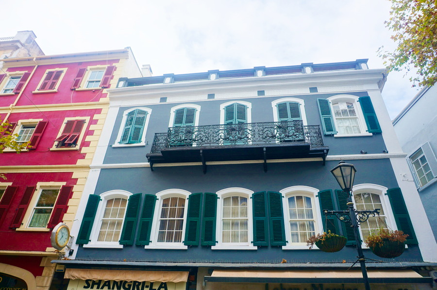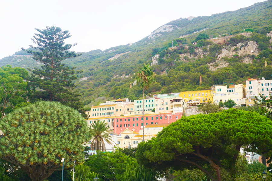 La ville de Gibraltar se trouve au pied de son rocher sur la côte ouest, côté baie, donc à l’abri du vent qui peut parfois souffler violemment depuis le détroit. Pas de doute, nous sommes bien au Royaume-Uni avec ses pubs, son architecture victorienne et ses restos de « fish and chips ». Mais les parois abruptes du rocher, les constructions à flanc de coteau, le mini territoire, l’humidité de l’air et la végétation subtropicale nous rappellent Hong Kong qui, rappelons-le, était également une colonie anglaise jusqu’en 1997.