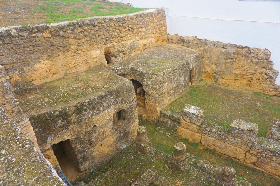 A l’ouest de la ville, à environ dix minutes de marche de la Puerta de Sevilla, se trouve une grande nécropole romaine datant des Ier et IIe siècles de notre ère. Ce serait le plus grand monument funéraire romain de la péninsule ibérique, et effectivement, c’est énorme et tout n’a pas encore été découvert. On ne parle pas ici de simples tombes mais de véritables mausolées où on ne se contentait pas seulement d’y enterrer les morts. En effet, les funérailles se célébraient à l’intérieur même du tombeau. Nous parlons de l’époque romaine donc il ne s’agissait pas de simples agapes mais de véritables banquets pour célébrer la mémoire du défunt. Tout était prévu : des salles à manger, des latrines, des cuisines, des salles pour les domestiques, etc…