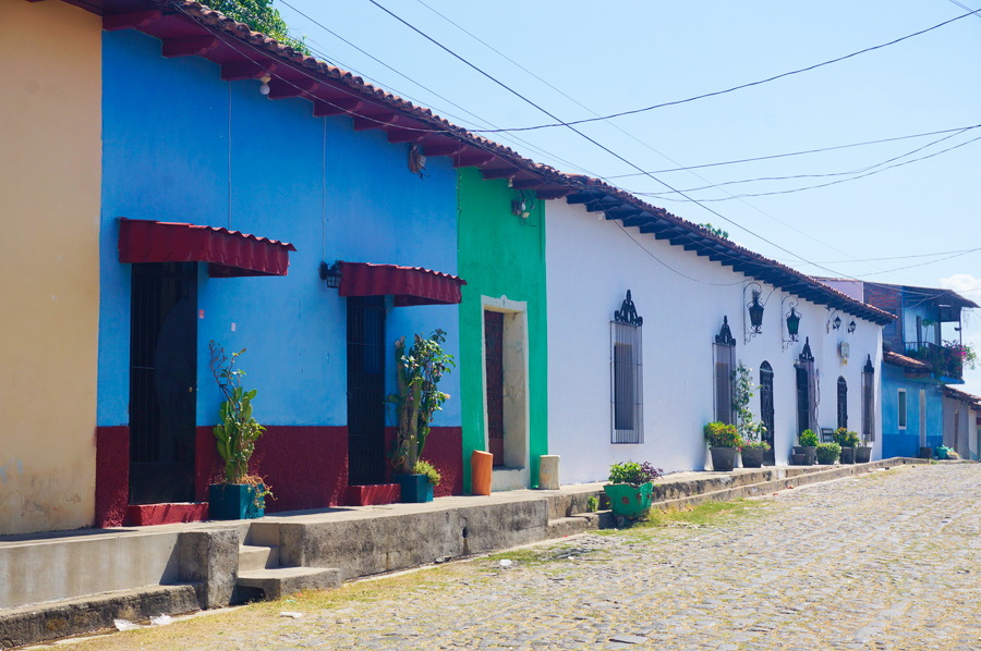 Nous avons longuement hésité sur notre étape au Salvador. Nous pensions à la base rejoindre la côte car la mer commence vraiment à nous manquer, Oui, déjà! Nous sommes d’irrécupérables amoureux de la mer! Mais nous avons eu de la peine à trouver notre bonheur niveau logement et, après diverses recherches et discussions avec d’autres voyageurs, nous en avons conclu que le littoral salvadorien est le paradis des surfeurs et autres sportifs de la vague mais moins des amoureux des jolies plages pour faire des promenades au bord d’une mer calme. Nous nous sommes donc rabattus sur Suchitoto et nous ne regrettons pas une seconde. Même si ce n’est pas du niveau d’Antigua, la ville coloniale est superbe dans une ambiance village tranquille et le paysage sur le lac est à couper le souffle. C’est une très belle alternative aux stations balnéaires du Pacifique.