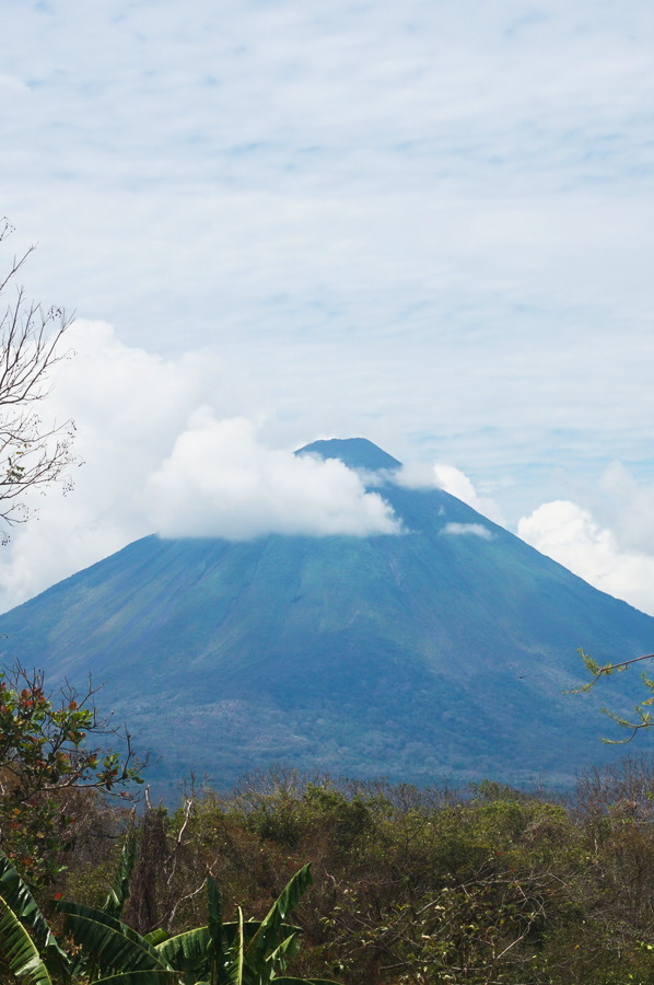 Ce cône quasi parfait est le volcan Concepción, le plus grand de l’île d’Ometepe culminant à 1610 mètres d’altitude. C’est un volcan très actif, sa dernière éruption remonte à 2007, et la population est sur le qui-vive en attendant sa prochaine colère. Il se voit depuis toute l’île et depuis une bonne partie du lac Cocibolca, un peu comme le Teide pour les Canaries. D’ailleurs, à l’instar de son grand frère espagnol, le Concepción se pare souvent d’un chapeau de nuages qui nous empêche de l’admirer dans toute sa splendeur.