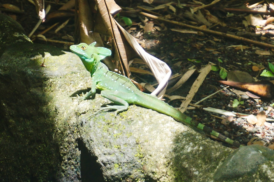 • un basilic qu’on appelle ici Jésus-Christ car il court tellement rapidement sur l’eau qu’il donne l’impression de carrément marcher sur l’eau