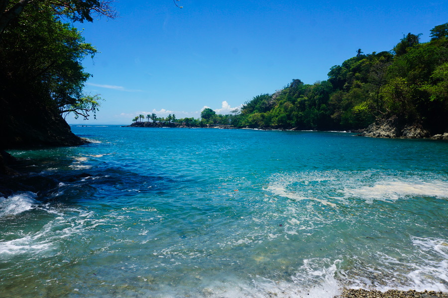 Toujours pendant notre « balade », nous descendons un sentier très escarpé qui nous mène dans une petite crique vraiment idyllique, la playa Paipa. Ce n’est pas du sable fin mais des cailloux qui nous attendent mais, mis à part ce petit détail, c’est vraiment la petite plage de rêve! Une eau cristalline et chaude dans une petite baie protégée par la forêt, ça fait rêver n’est-ce-pas? En plus, nous étions seuls au monde. De quoi recharger un peu nos batteries et nous rafraichir avant de reprendre la grimpette!