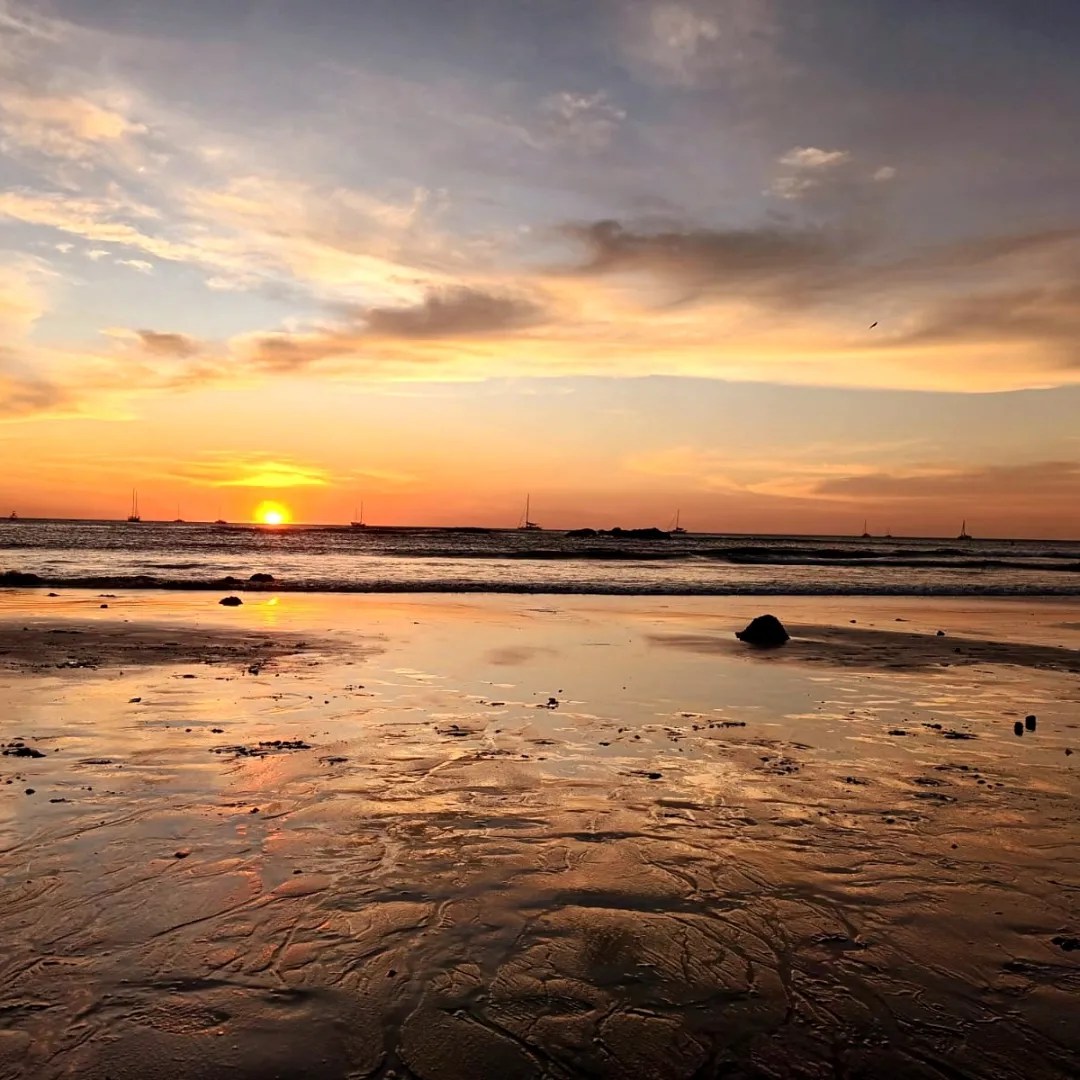 La côte Caraïbe costaricienne à la réputation d’être beaucoup plus belle que celle du Pacifique. Nous ne pouvons pas infirmer ou confirmer ce fait car nous n’avons pas du tout été sur la côte est. Par contre, ce que nous savons c’est que le Pacifique a un gros avantage sur son rival Atlantique, c’est de se trouver à l’ouest. Qui dit côte ouest dit coucher de soleil! Et celui de Tamarindo était juste magique!
