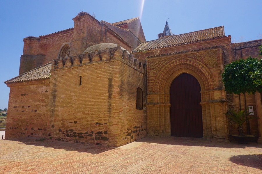 Ce n’est de loin pas la cathédrale la plus pittoresque d’Andalousie mais elle est très intéressante d’un point de vue architectural. Elle est construite sur une acropole (nom grec qui signifie le point le plus haut d’un ville) qui domine les lagunes de la ria de Huelva. Elle est du plus pur style gothique-mudéjar et pourtant, il n’y a jamais eu de mosquée à cet emplacement. Au XIVe siècle, lors du début de sa construction, il était courant de construire des édifices en prenant comme modèle le style musulman déjà présent, même après la Reconquista. Puis le XVe siècle arriva et on continua les travaux en gothique cette fois-ci. Le clocher, quant à lui, est du plus pur style Renaissance avec son corps baroque et son toit de mosaïque typiquement andalou sans oublier l’indispensable nid à cigognes!