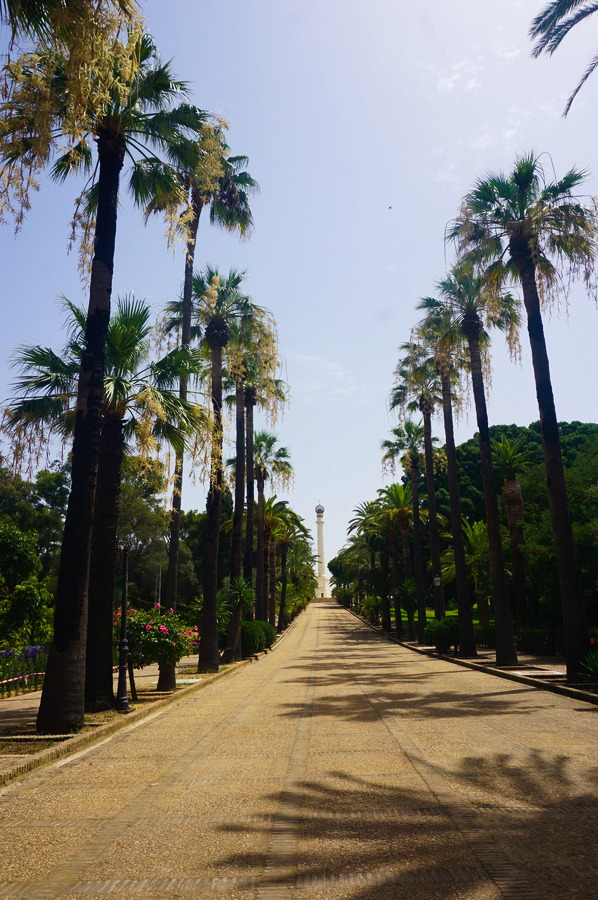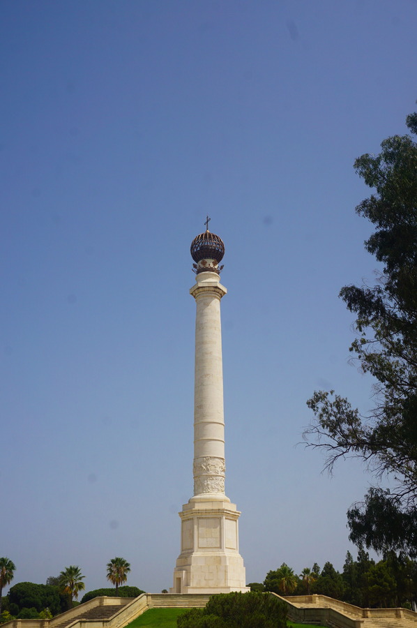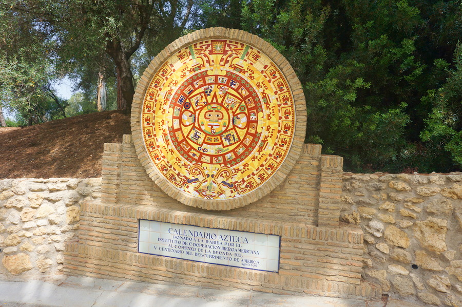 Bien que le monastère soit magnifique, ce n’est pas lui qui nous a attiré dans ce coin de pays par une chaude journée d’été. Nous voulions comprendre l’histoire autour de la découverte de l’Amérique. Pour cela, rien de tel que de parcourir la bien nommée Avenida de las Americas! Pour la trouver, c’est facile, il suffit de repérer l’immense monument érigé en l’honneur des explorateurs. Cette colonne haute de presque 55 mètres à été inaugurée le 12 octobre 1892, le jour du quatre centième anniversaire de l’arrivée de Christophe Colomb, en Amérique, sur une île des Bahamas. Quant à l’avenue en elle-même, il n’y a rien d’inoubliable mais l’ombre des palmiers est bienvenue par cette chaleur et les mosaïques des différents emblèmes des pays américains sont très belles. Le calendrier aztèque, cadeau du Mexique à l’Espagne, est également très sympa. Nous qui venions de rentrer de notre trip en Amérique Centrale, ça nous a fait de jolis souvenirs.