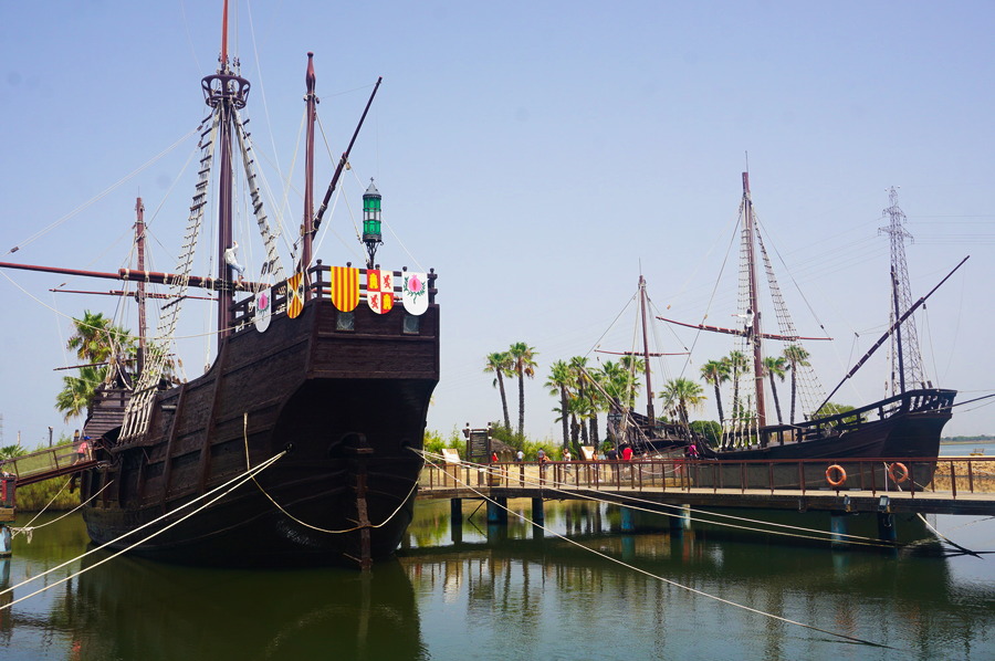 Voilà la vraie raison pour laquelle nous avons vu un monastère, une colonne un peu mégalo et les emblèmes des anciennes colonies espagnoles : les fameuses caravelles empruntées par Christophe Colomb himself et son équipage lors du voyage de découverte de l’Amérique. Bon d’accord, ce ne sont que des reproductions car les vraies, après une traversée de l’Atlantique, se sont sûrement retrouvées dans un état déplorable.