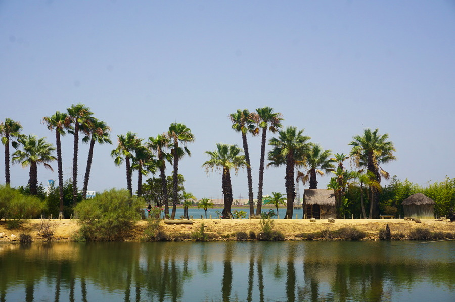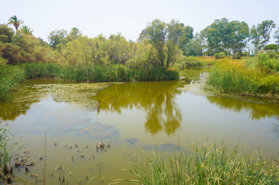 Nous n’avons pas du tout accroché avec la ville de Huelva. Elle fait un peu pâle figure si on compare avec les autres capitales provinciales d’Andalousie qui sont vraiment pittoresques et, manque de bol, la place centrale qui a l’air assez jolie et qui possède une statue de Christophe Colomb est en travaux. C’est assez difficile de s’en faire une idée. Par contre, nous avons adoré son environnement dans les marismas del Odiel, une réserve de biosphère de marais et de lagunes composée par les deltas des rivières Odiel et Tinto. Un truc sympa à faire, si le soleil ne tape pas trop fort, c’est de se balader dans la ria (un terme portugais mais également utilisé à Huelva ou en Galice pour désigner un delta) sur l’ancien pont de chargement des minerais qui a été reconverti en promenade et, pour les plus téméraires, en plongeoir. Ce pont qui date de la fin du XIXe siècle et qui représente parfaitement l’architecture industrielle de cette époque était en fait un pont ferroviaire. Le port de Huelva se trouvait à cet emplacement jusqu’au milieu du XXe siècle et ce quai de chargement permettait de faire passer les marchandises directement du train au bateau.