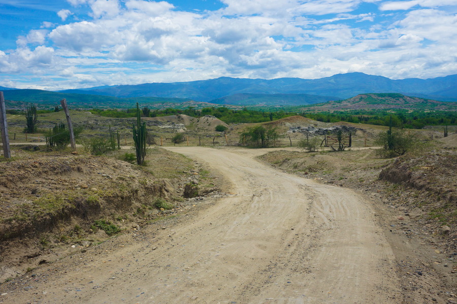 Pour partir de Villavieja, il n’y a pas besoin de passer par l’infernale Neiva! Il suffit de traverser le Rio Magdalena! Pour ce faire, il faut emprunter le bac qui part à l’extrémité nord du malécon. Il n’accepte que les piétons et les motos. Quand nous sommes arrivés sur l’autre rive, à Aipe, nous avons compris pourquoi! Nous arrivons sur un sentier qui traverse la forêt et des pâturage avant d’atteindre la civilisation vingt minutes de marche plus tard. Il y a un service de mototaxi qui fait la navette entre le village et l’embarcadère mais avec nos sacs, nous avons préférer y aller à pied.